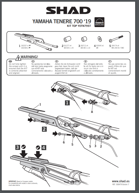 * Stelaż nie jest kompatybilny z fabrycznym stelażem kufrów bocznych.