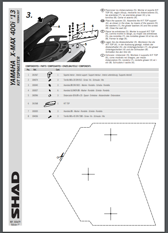 Stelaż pod kufer centralny SHAD Y0XM43ST - YAMAHA XMAX 125 (14-16)/XMAX 250/400 (14-17)