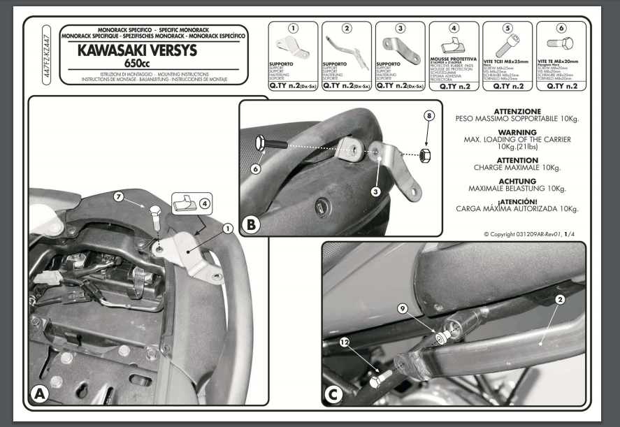 Stelaż kufra centralnego Kappa KZ447 KAWASAKI Versys 650 (06-09)