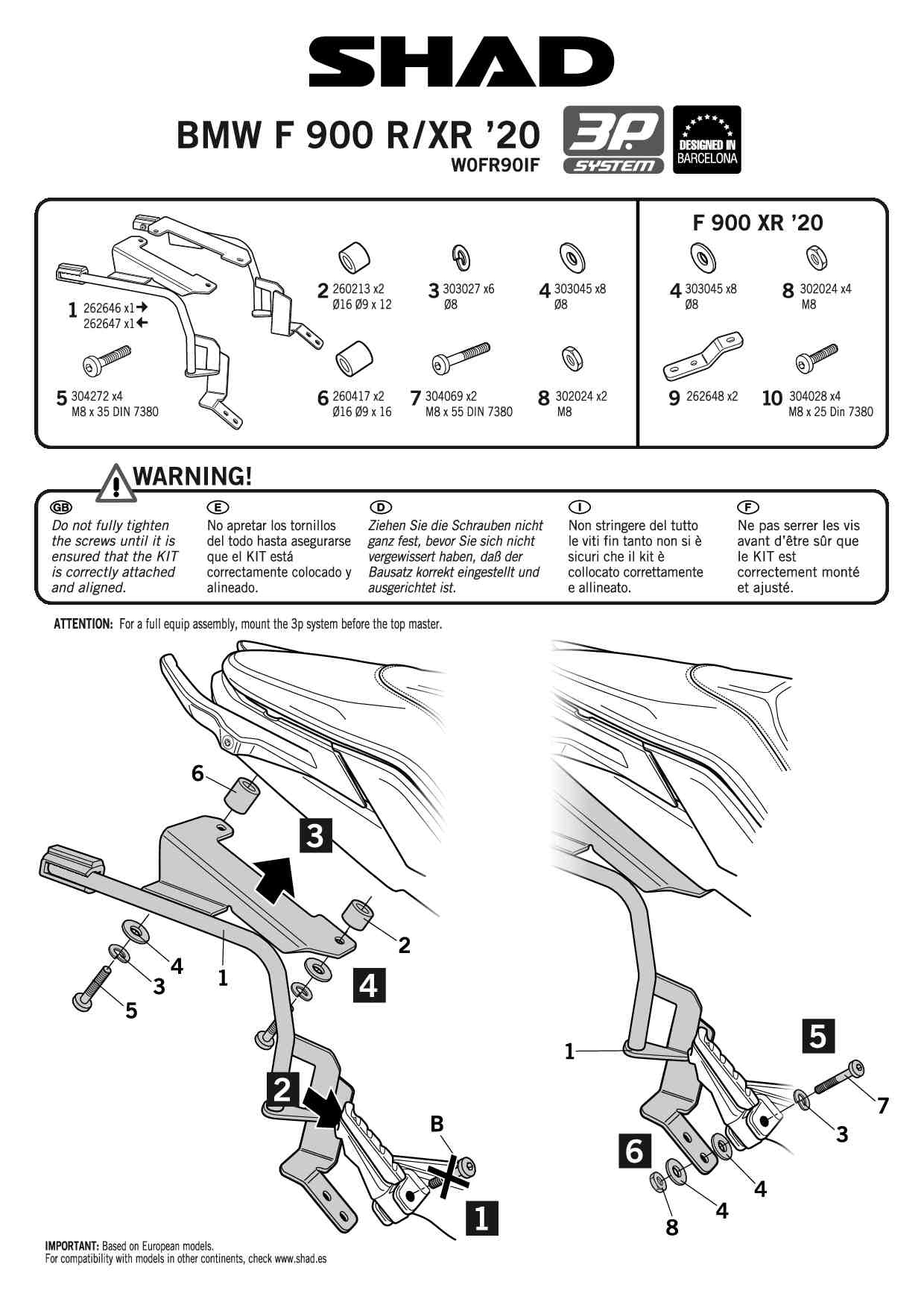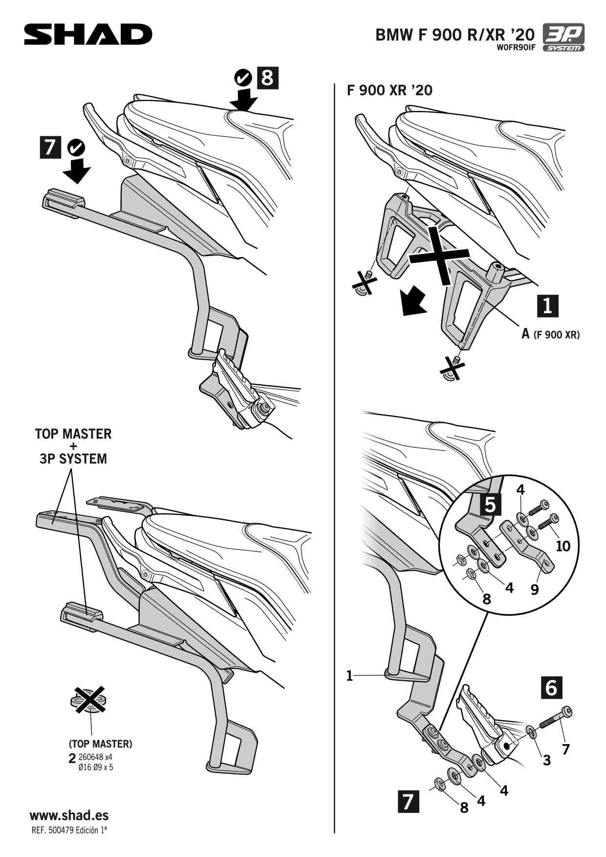 * W modelu F 900 XR należy zdemontować oryginalny stelaż boczny.