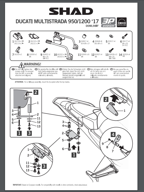 Stelaż pod kufry boczne SHAD D0ML98IF 3P System - Ducati Multistrada 950/S (17-24) / 1200/Enduro (16-24) / 1260/Enduro (18-24) / V2 (23-24)