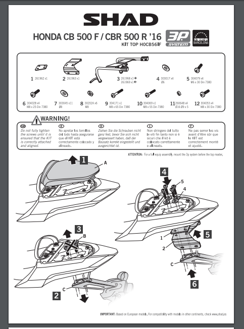 Stelaż pod kufry boczne SHAD H0CB56IF 3P System - Honda CB 500 F / CBR 500 R (16-18)