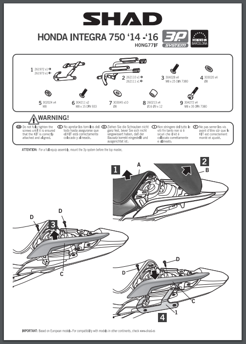 Stelaż pod kufry boczne SHAD H0NG77IF 3P System - Honda Integra 750 (16-24)