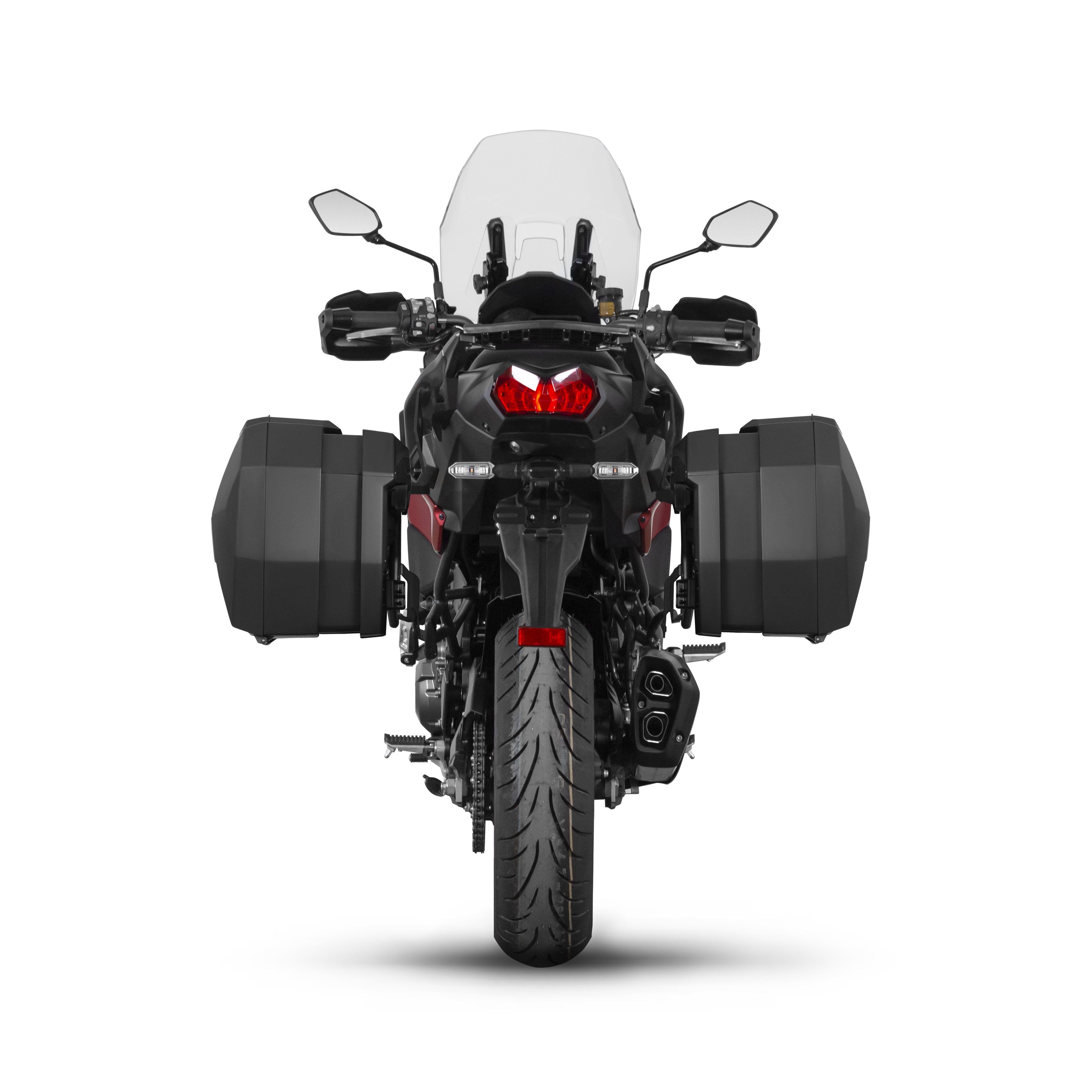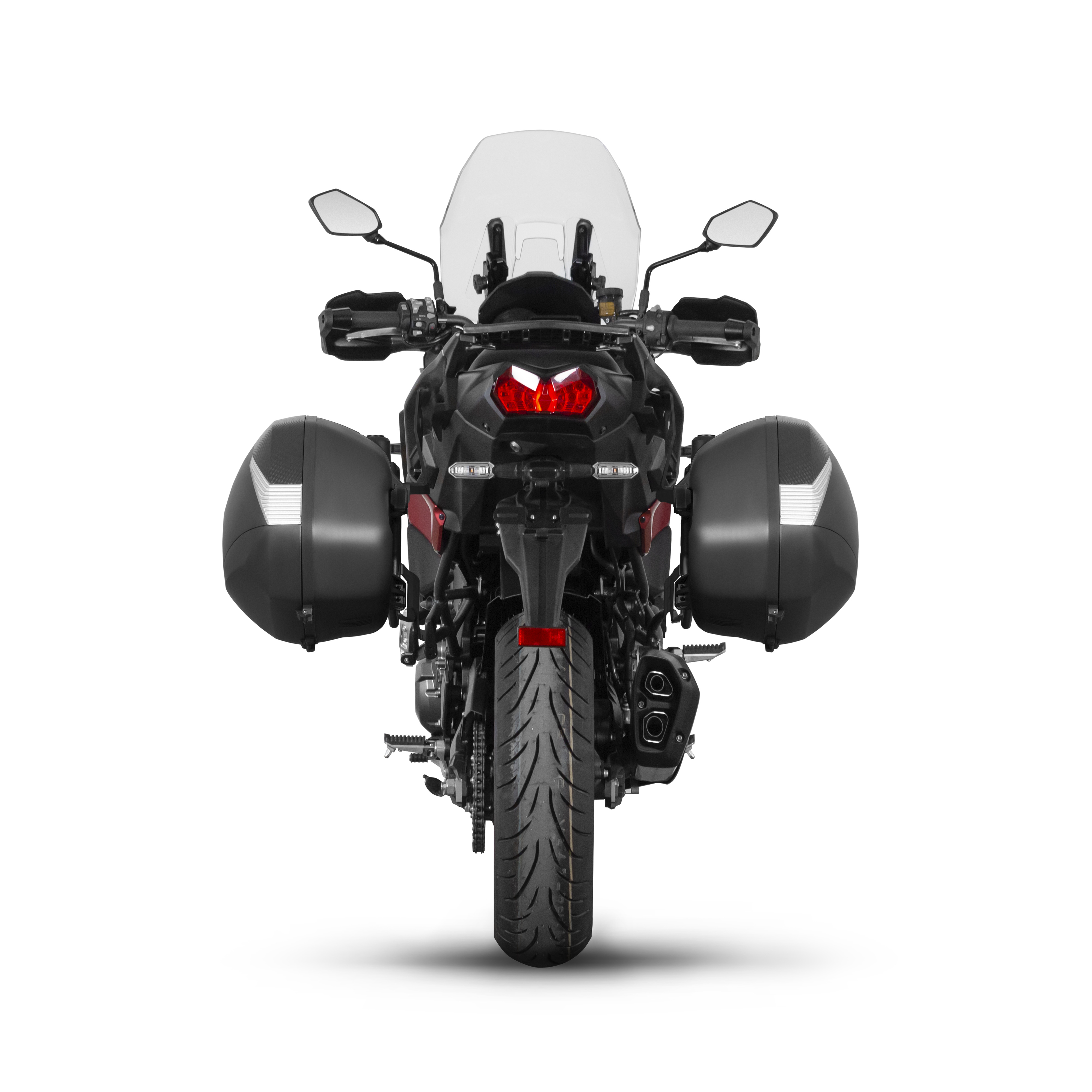 Optymalna pozycja: Zarówno rozmiar, kształt kufrów bocznych, jak i nachylenie systemu 3P, zostały starannie zaprojektowane, aby przesunąć ciężar bagażu w stronę środka ciężkości motocykla. Taka konfiguracja zwiększa bezpieczeństwo oraz stabilność podczas jazdy, szczególnie przy pełnym obciążeniu.