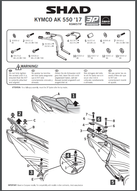 * Do stelaża 3P można zamocować kufry SH23, SH35 oraz SH36.