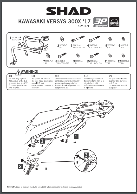 Stelaż pod kufry boczne SHAD K0VR37IF 3P System - Kawasaki Versys-X 300 (17-24)