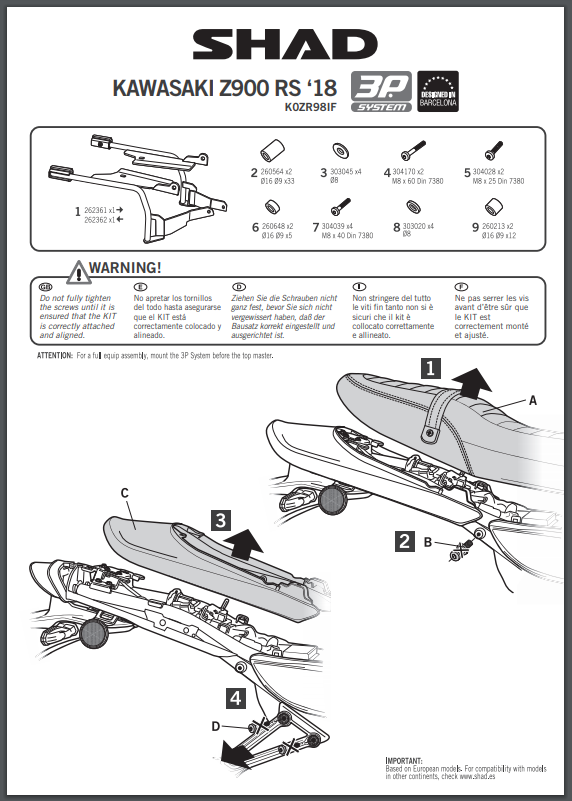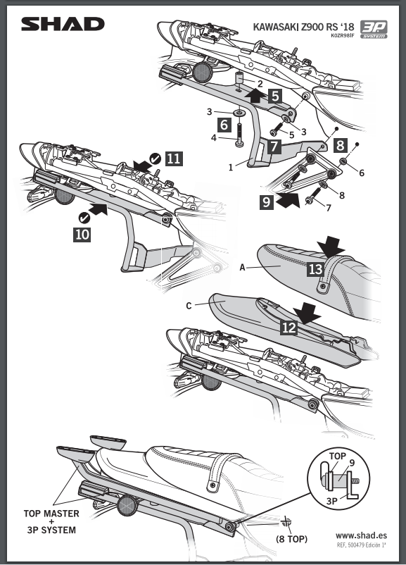 Stelaż pod kufry boczne SHAD K0ZR98IF 3P System - Kawasaki Z 900 RS (18-24) / Z 900 RS CAFE (20-24)
