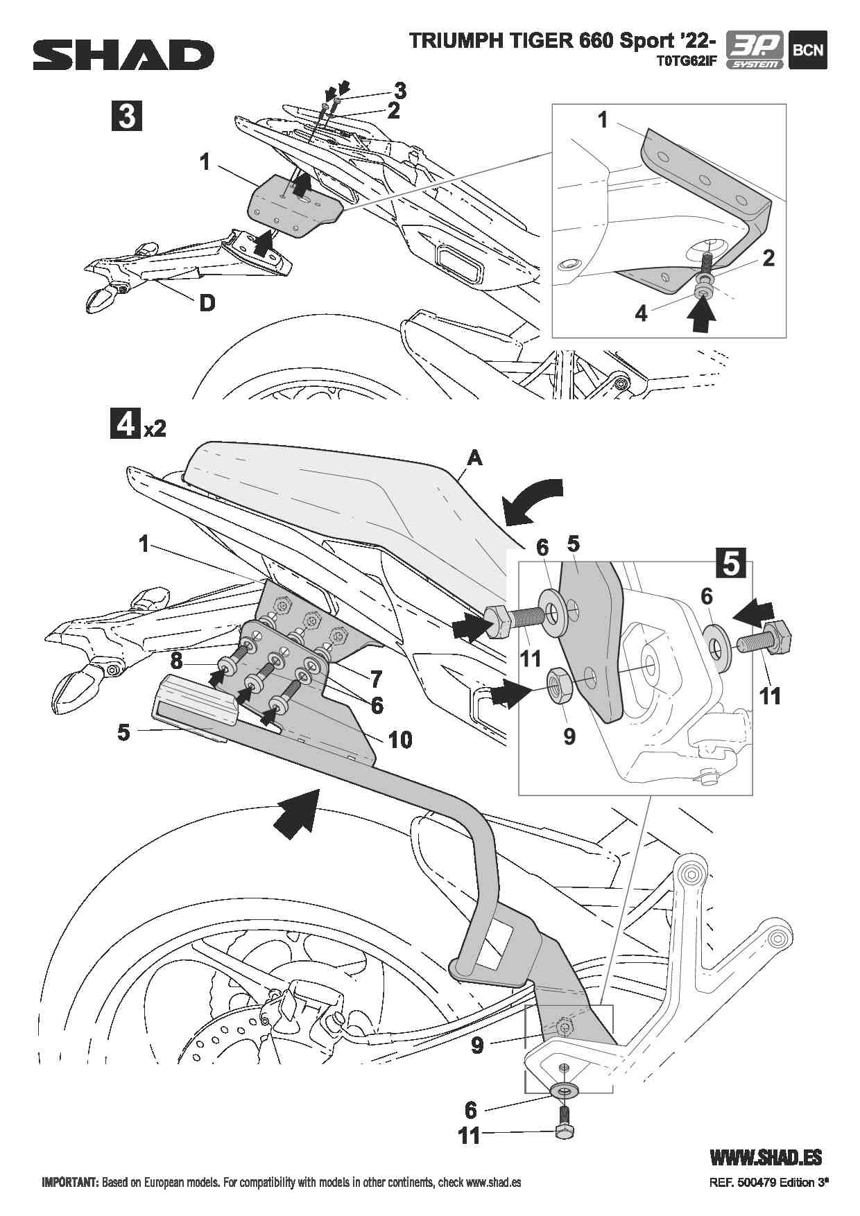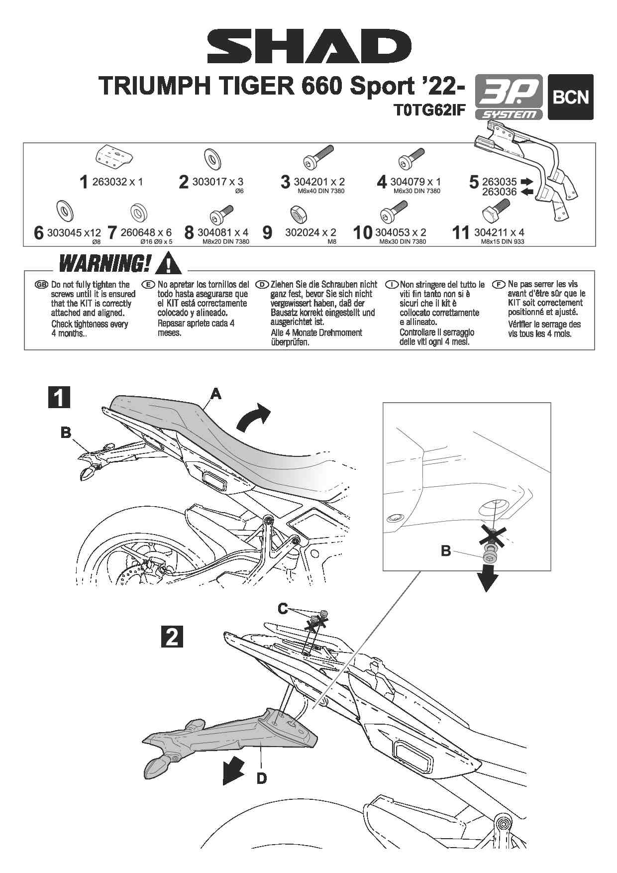 Stelaż kufrów bocznych 3P TRIUMPH TIGER 660 (22-24) SHAD T0TG62IF