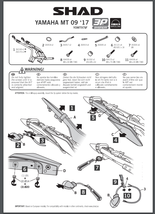 Stelaż pod kufry boczne SHAD Y0MT97IF 3P System - YAMAHA FZ09/MT09 (13-20)