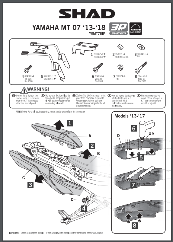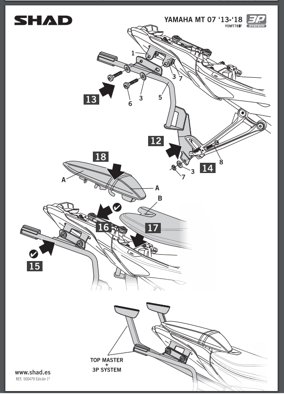 * Do stelaża 3P można zamocować kufry SH23, SH35 oraz SH36.