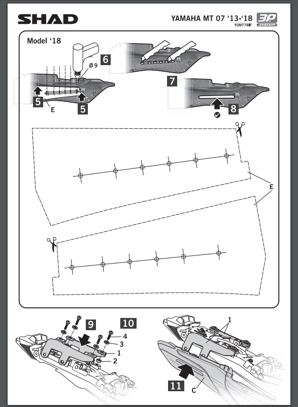 Stelaż pod kufry boczne SHAD Y0MT78IF 3P System - YAMAHA MT07 (13-24)