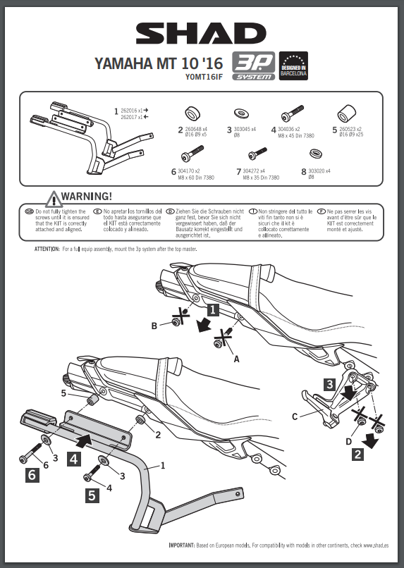 Stelaż pod kufry boczne SHAD B0LN57IF 3P System - YAMAHA MT10 (16-21)
