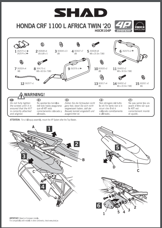 Stelaż kufrów bocznych 4P Honda CRF1100L Africa Twin (20-21) SHAD H0CR104P