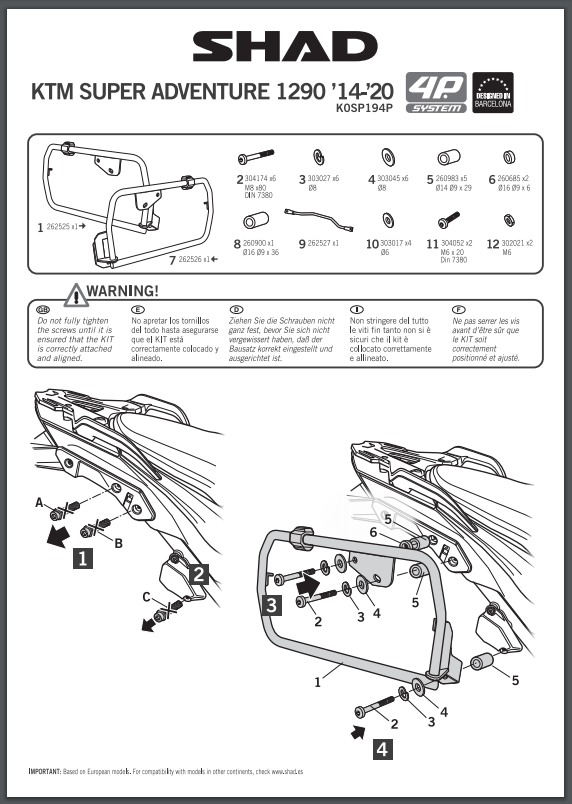 Stelaż pod kufry boczne SHAD K0SP194P 4P System - KTM 1190 ADV / R (14-16) / 1290 Super ADV R/S/T (14-20)