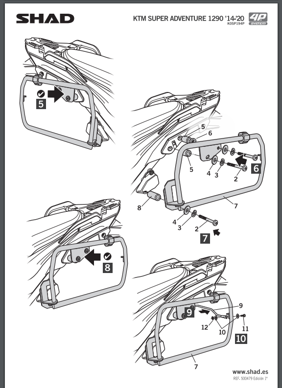 Stelaż kufrów bocznych 4P KTM 1190 ADV / R (14-16) / 1290 Super ADV R/S/T (14-20) SHAD K0SP194P
