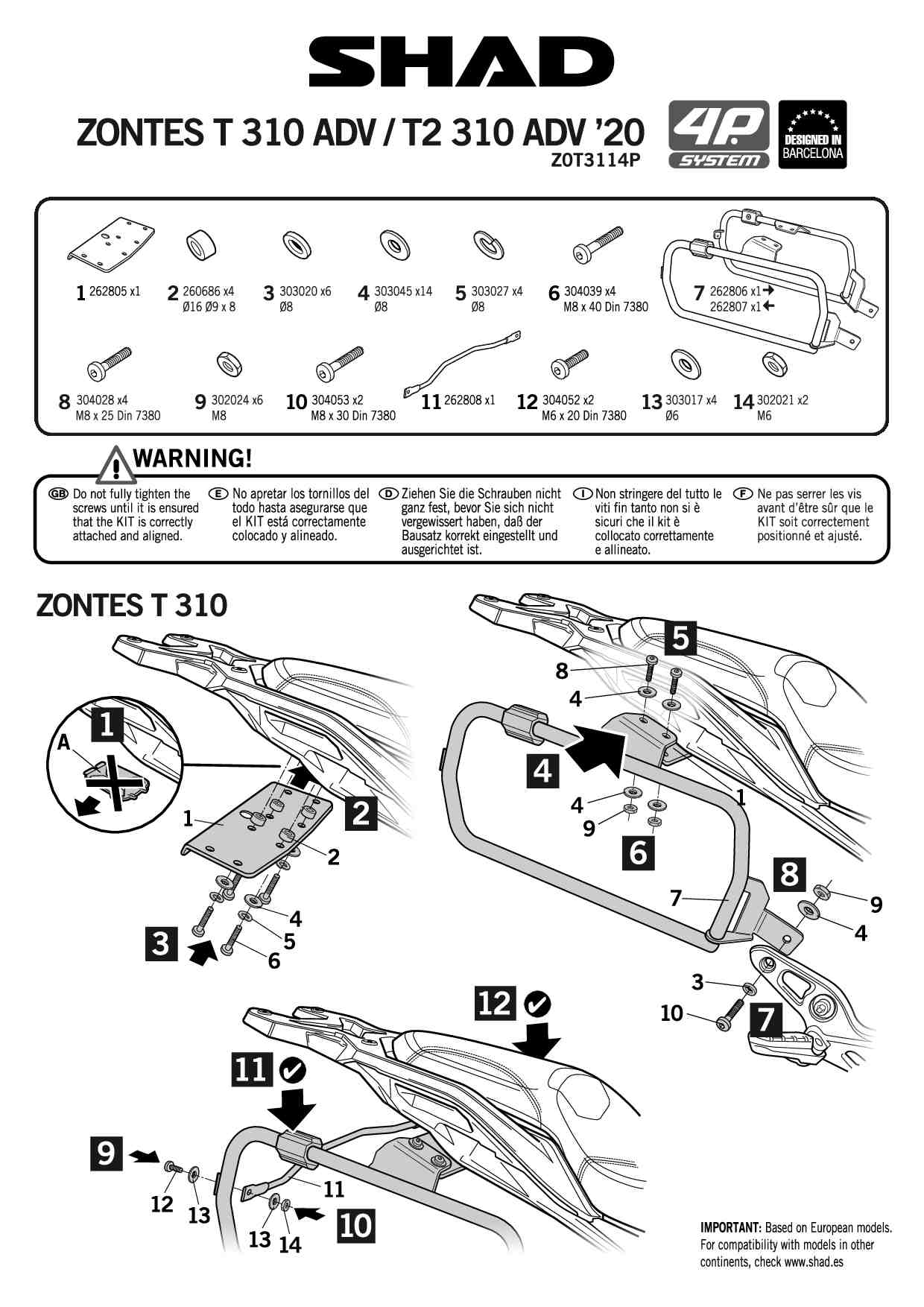 Stelaż pod kufry boczne SHAD Z0T3114P 4P System - ZONTES T2-310, T310, T350/X