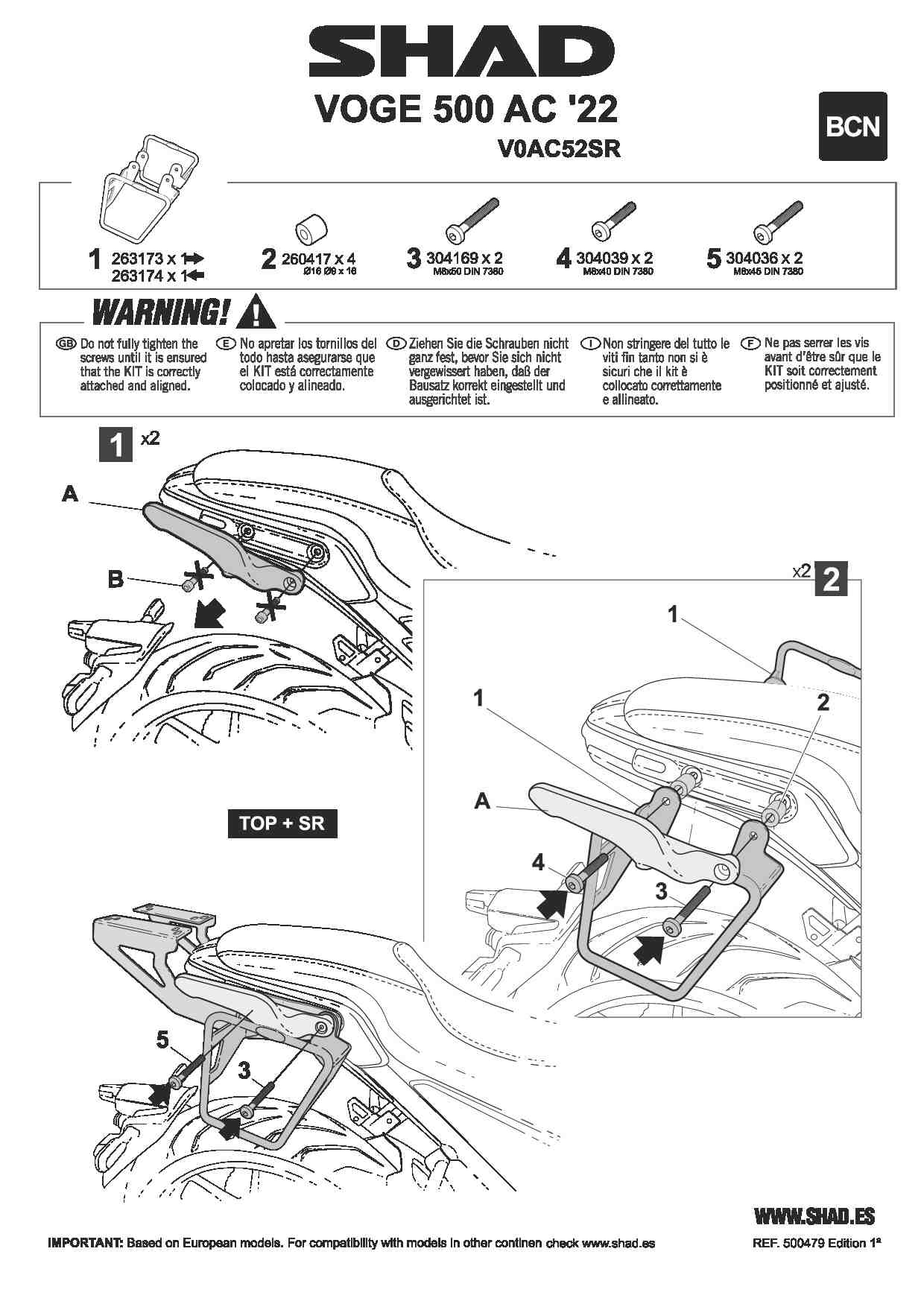Stelaż sakw bocznych VOGE Trofeo 500AC (21-25) / 525AC (23-25) SHAD V0AC52SR