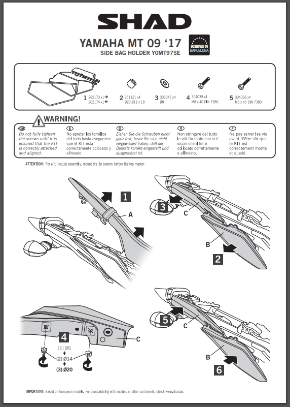* Do stelaża można zamocować sakwy SHAD E48, SL58 oraz SW42.