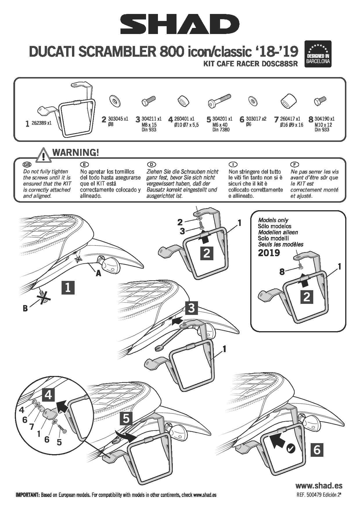 * Dedykowany stelaż pod sakwę SHAD tylko model SR38.