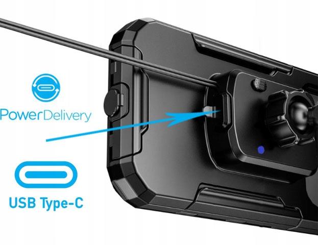 Uchwyt motocyklowy z etui na telefon i ładowarkami - 167-HARD-W-PD