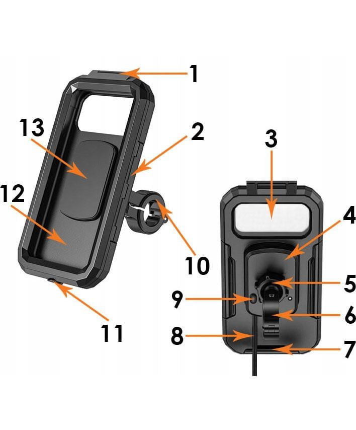 Uchwyt motocyklowy z etui na telefon i ładowarkami – 167-HARD-W-PD