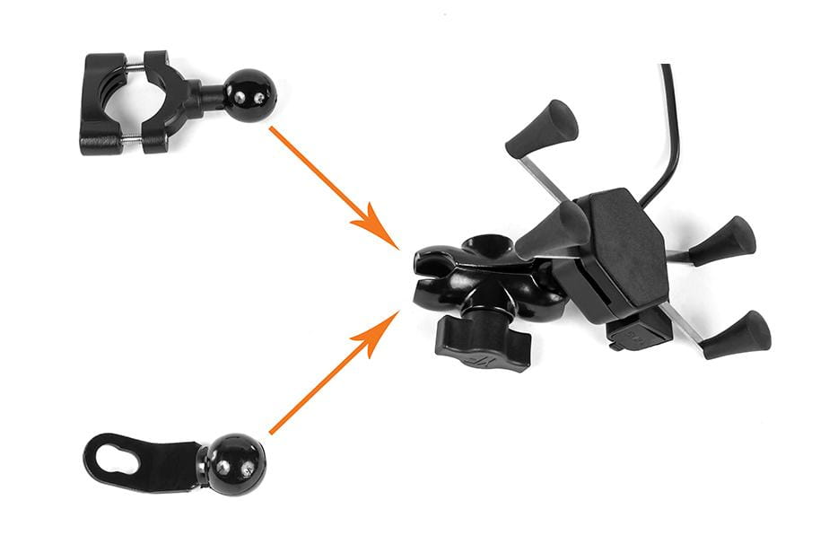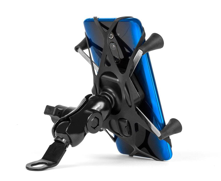 Oprócz standardowego mocowania obejmującego kierownicę, w zestawie znajduje się również mocowanie pod lusterko lub pod śrubę. Alternatywne mocowanie sprawdza się w przypadku mocno zabudowanych kierownic motocykli czy skuterów.