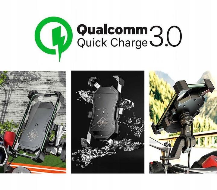 Ten uchwyt to przede wszystkim wygoda i bezpieczeństwo! Poza tym to połączenie ładowarki indukcyjnej i szybkiej ładowarki USB z uchwytem na motocykl do telefonu.