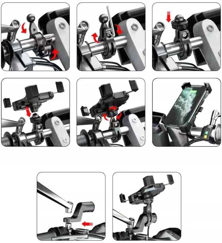 - Uniwersalny uchwyt można zamontować praktycznie do każdej kierownicy o średnicy od 20 do 30 mm.