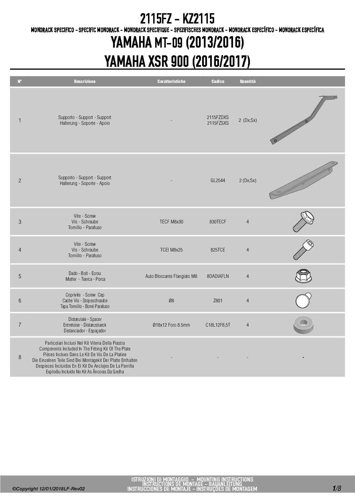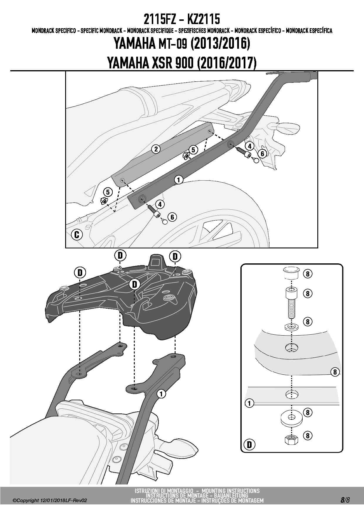 Stelaż kufra centralnego Givi 2115FZ do motocykla Yamaha XSR900 (16-21) / MT-09 (13-16)