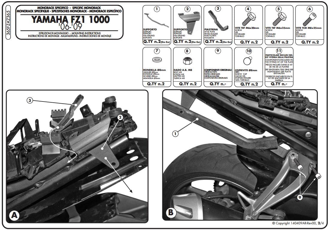 Stelaż kufra centralnego Givi 365FZ do motocykla Yamaha FZ1 1000 (06-15)