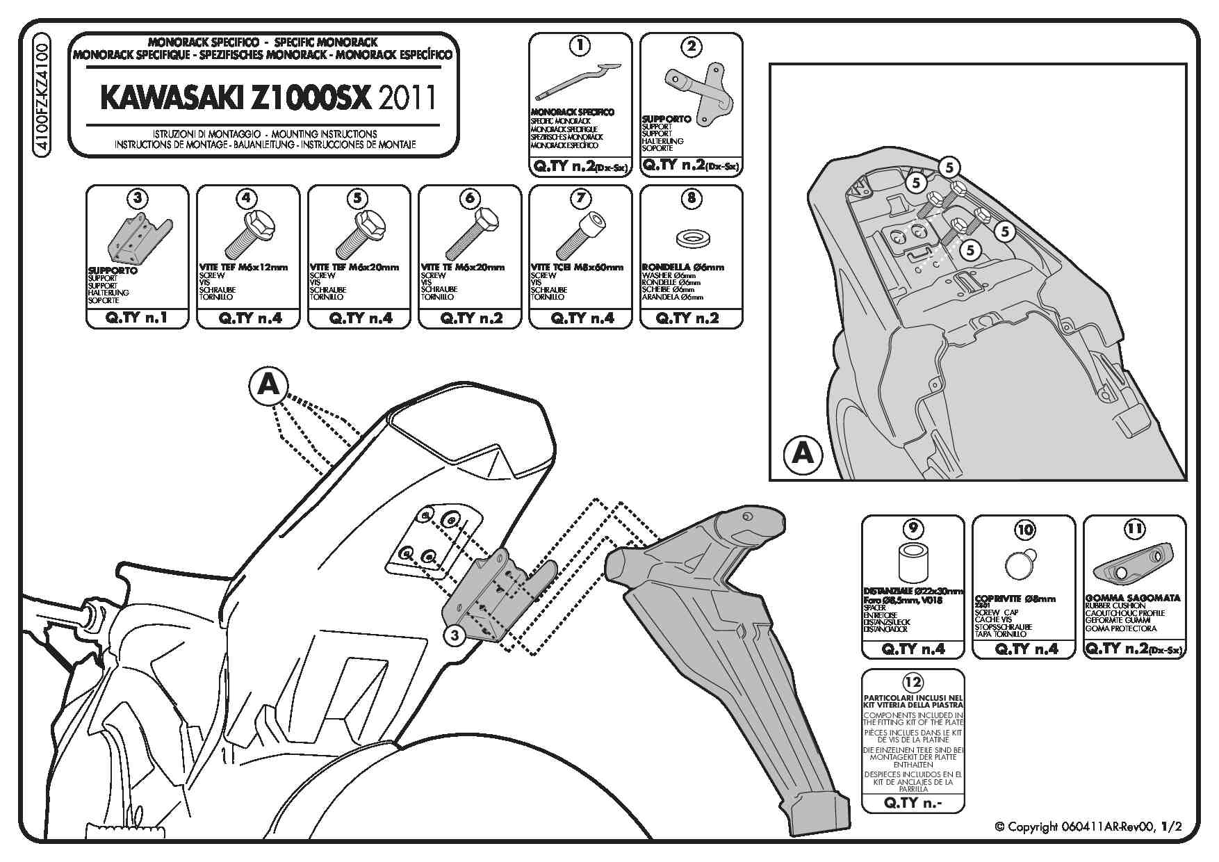 Stelaż kufra centralnego Givi 4100FZ do motocykla Kawasaki Z 1000 SX (11-19)