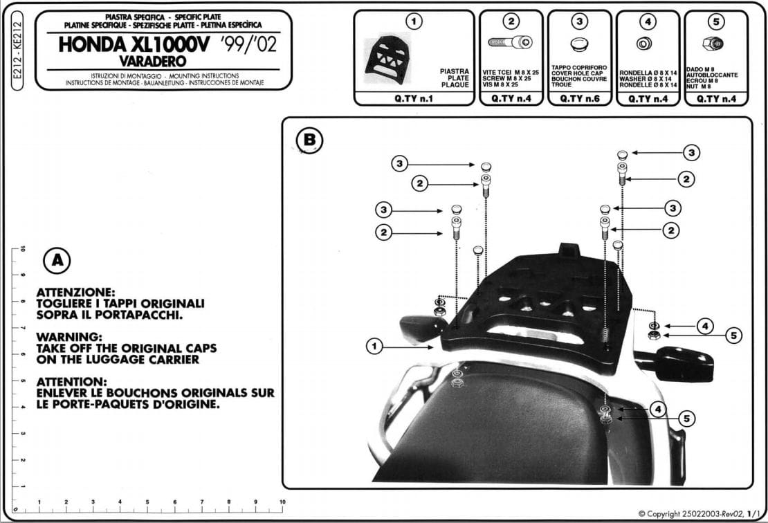 Stelaż kufra centralnego GIVI E212 Honda XL1000V Varadero (99-06)