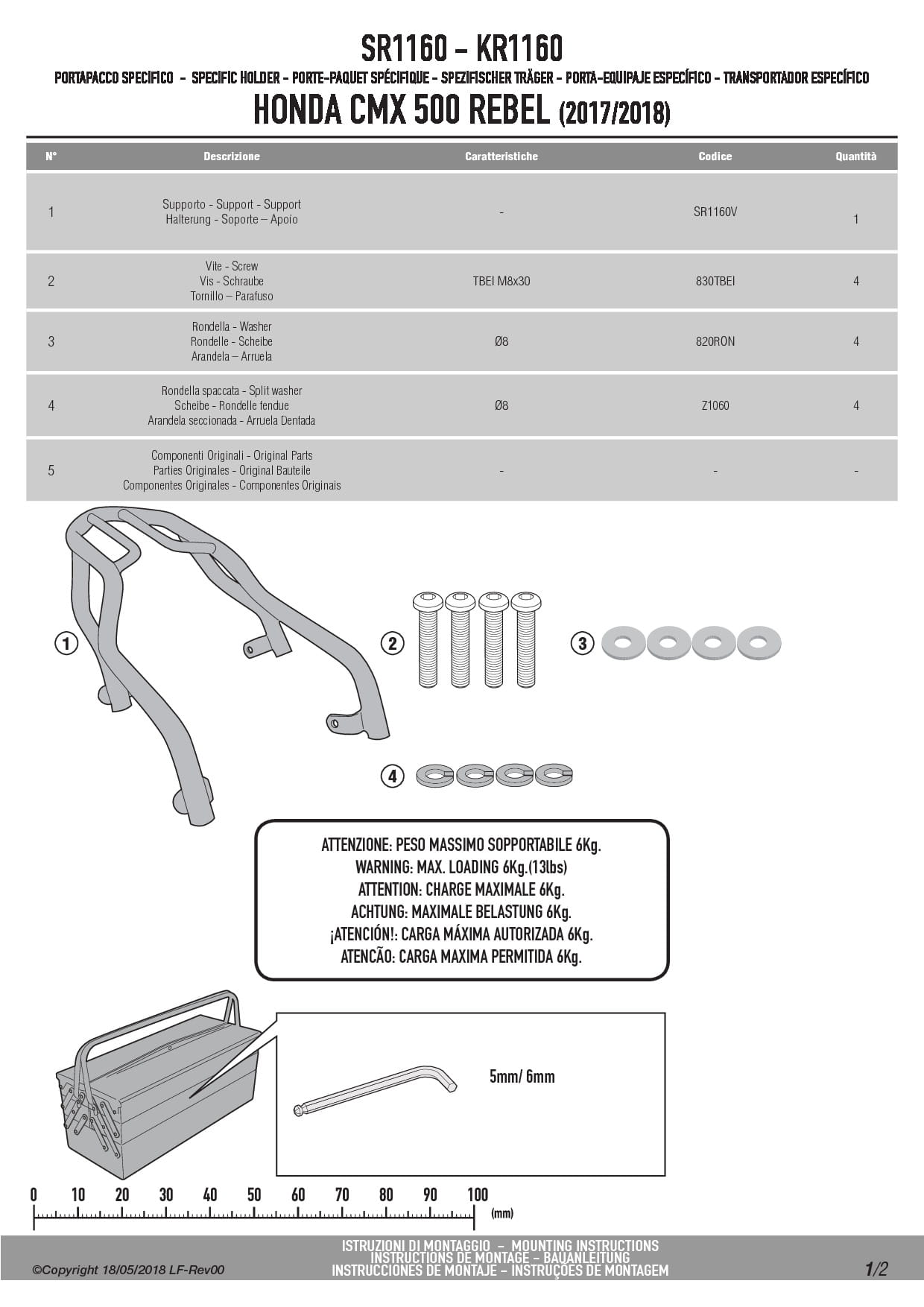 Stelaż kufra centralnego Givi SR1160 do motocykla Honda CMX 500 Rebel (17-25)