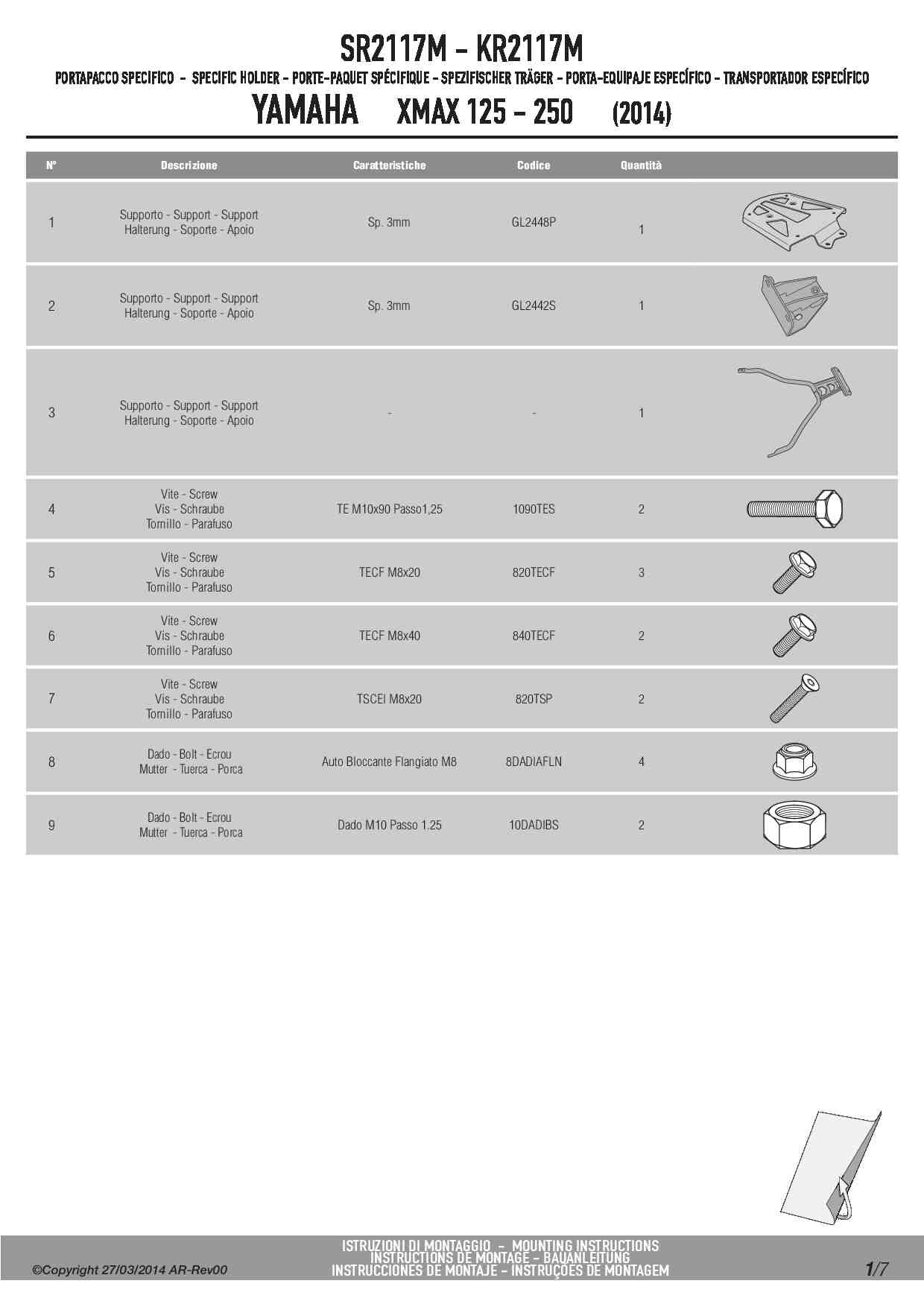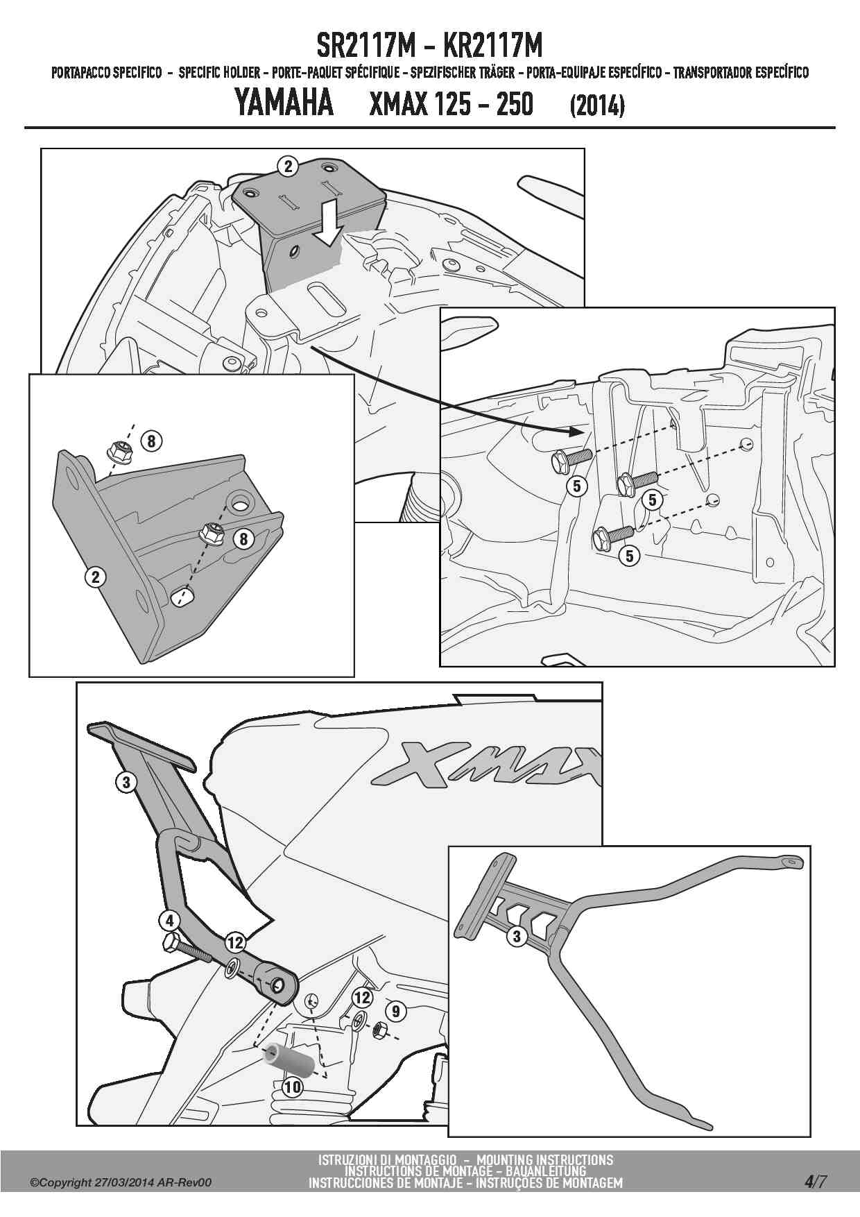 Stelaż kufra centralnego Givi SR2117M do skutera MBK Evolys 125-250 (14-17) / Skyliner 125-250 (14) / Yamaha X-Max 125-250 (14-17)