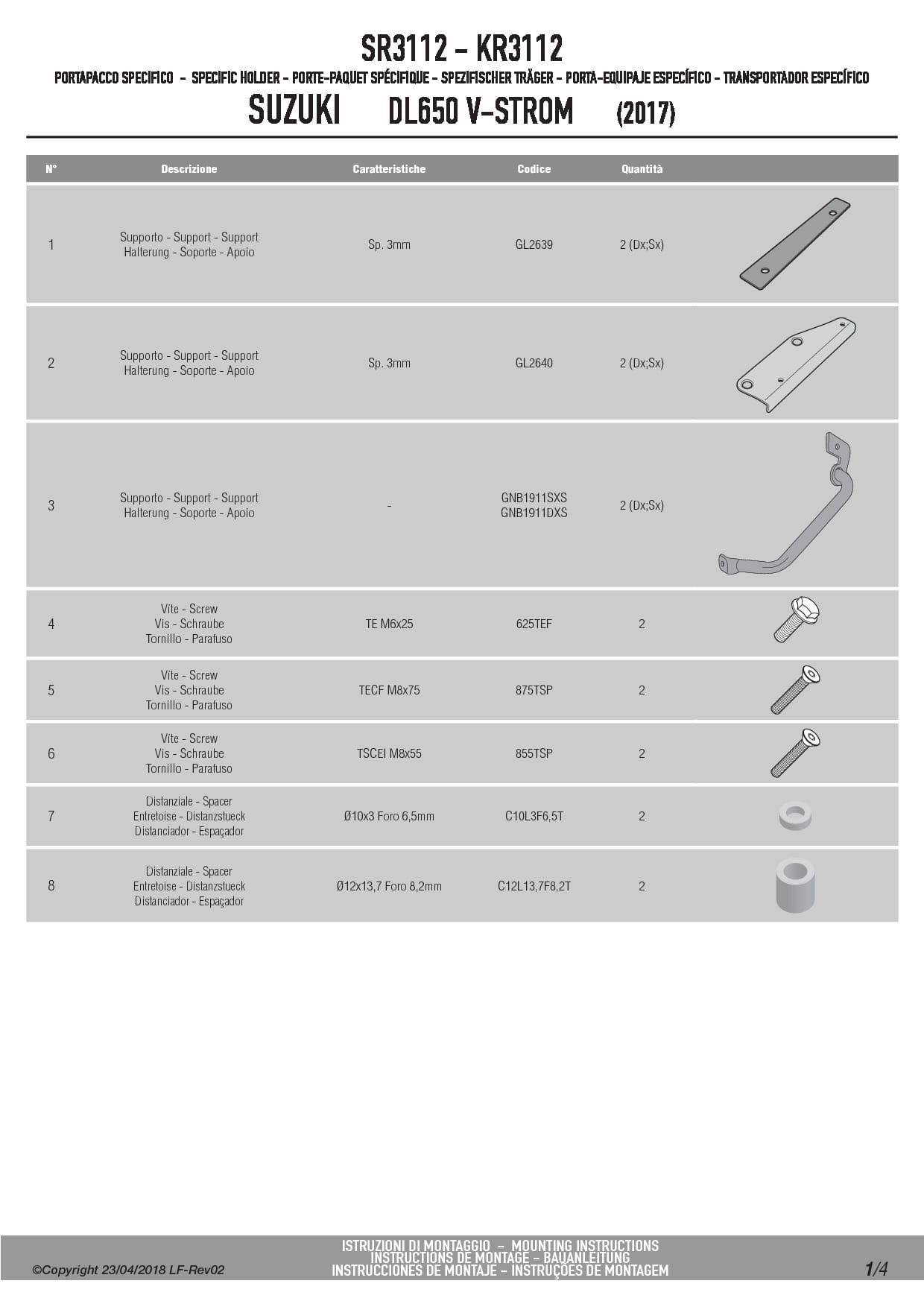 Givi SR3112 Stelaż kufra centralnego Suzuki DL 650 V-Strom (17-24) / DL 1000 V-Strom (17-19)
