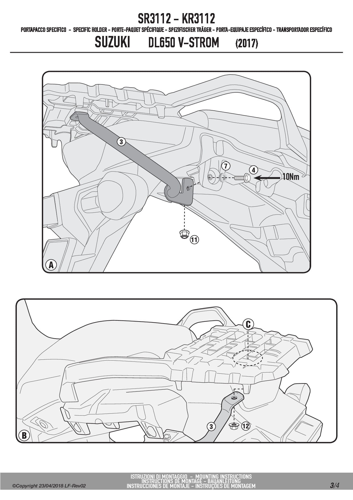 Stelaż kufra centralnego Givi SR3112 do motocykla Suzuki DL 650 V-Strom (17-24) / DL 1000 V-Strom (17-19)