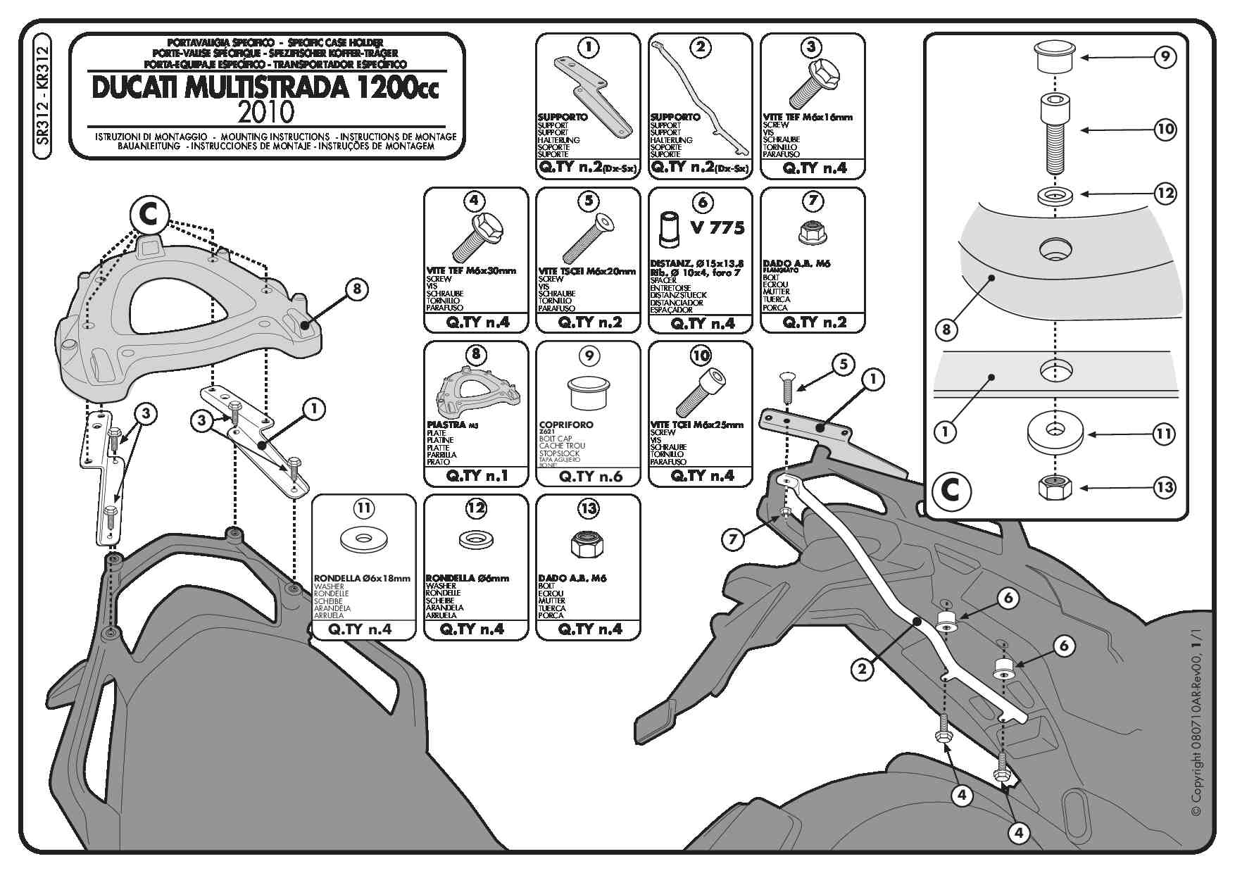 Stelaż kufra centralnego Givi SR312 do motocykla Ducati Multistrada 1200 (10-14)