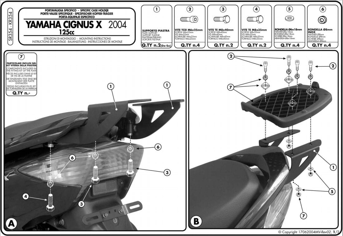 Givi SR354 Stelaż kufra centralnego Yamaha Cignus X 125 (04-15) / MBK Flame X 125 (07-12)
