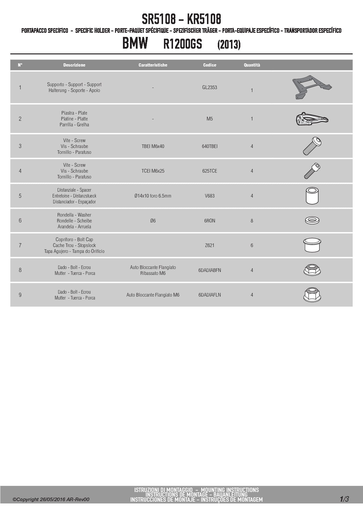 Stelaż kufra centralnego Givi SR5108 do motocykla BMW R 1200 GS (13-18) / R 1250 GS (19-23)