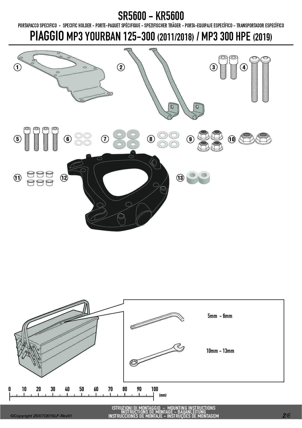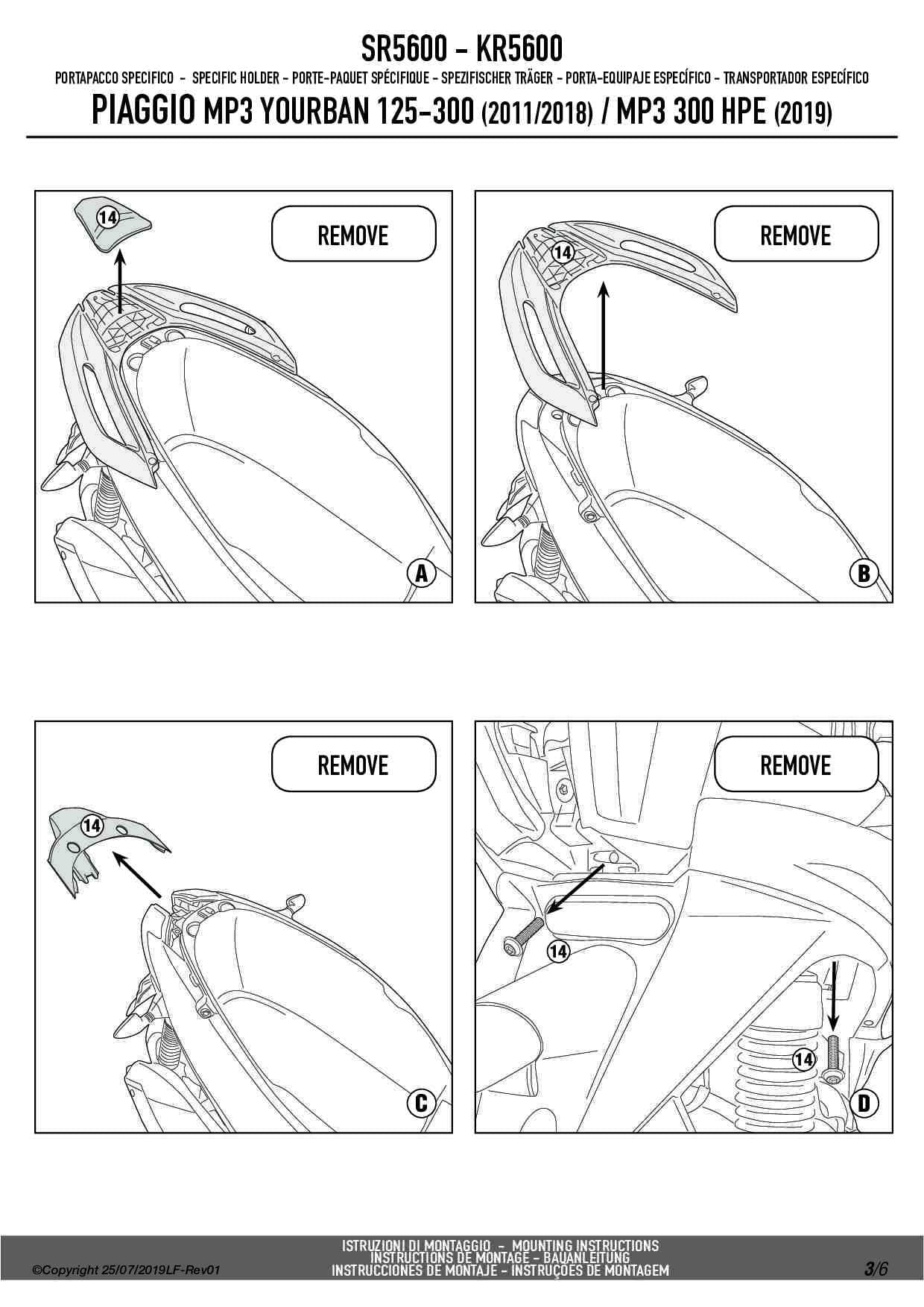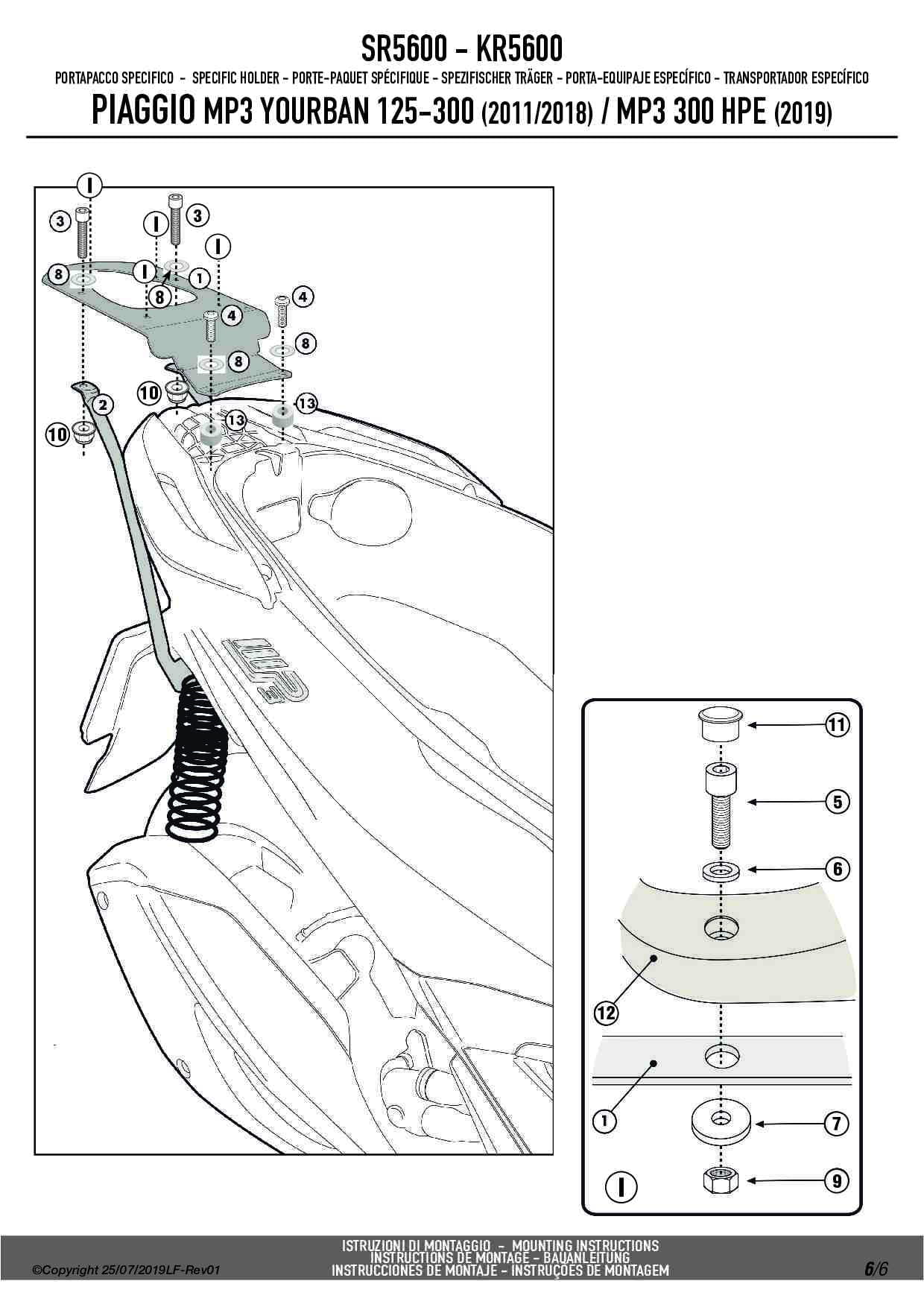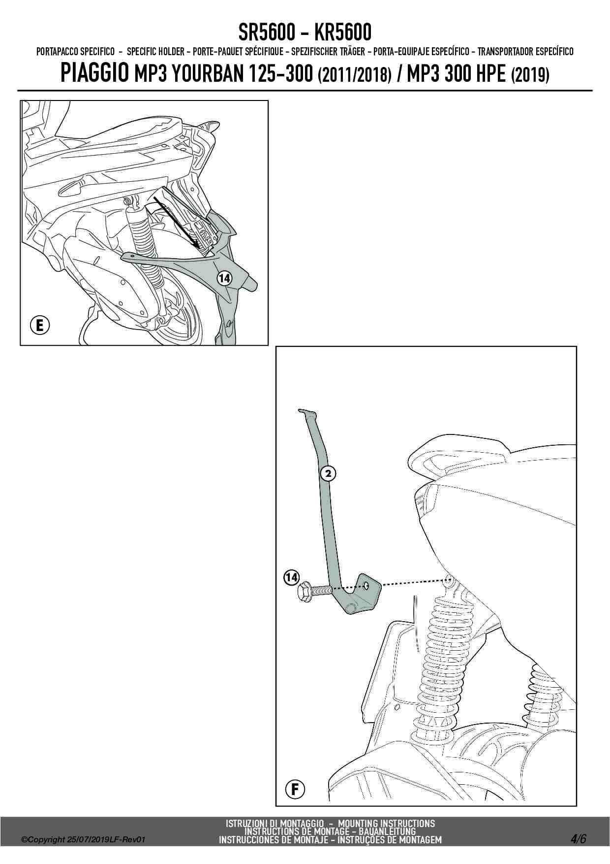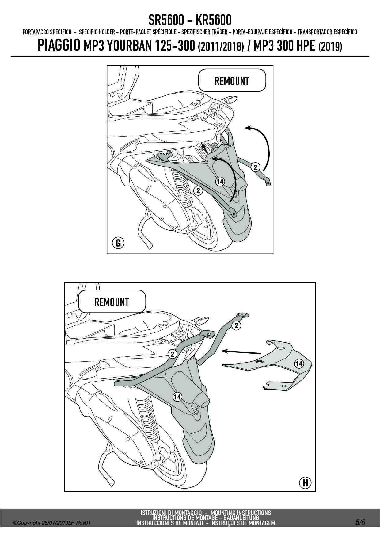 Stelaż kufra centralnego Givi SR5600 do skutera Piaggio MP3 Yourban 125-300 (11-18) / MP3 300 HPE (19-24)