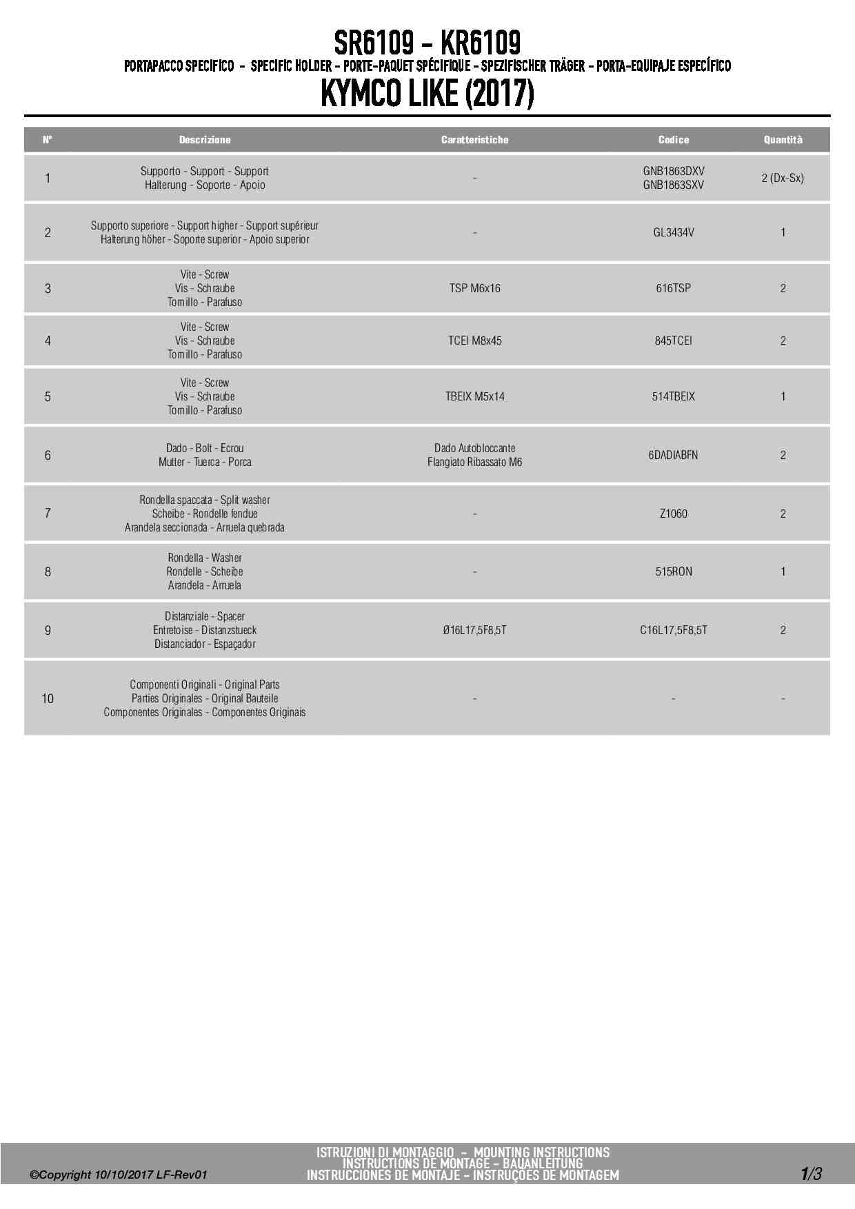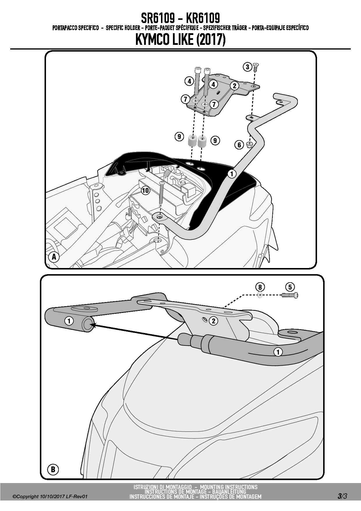 Stelaż kufra centralnego Givi SR6109 do skutera Kymco Like 50-125-150 (17-25) / Like Sport 125 (22-25)