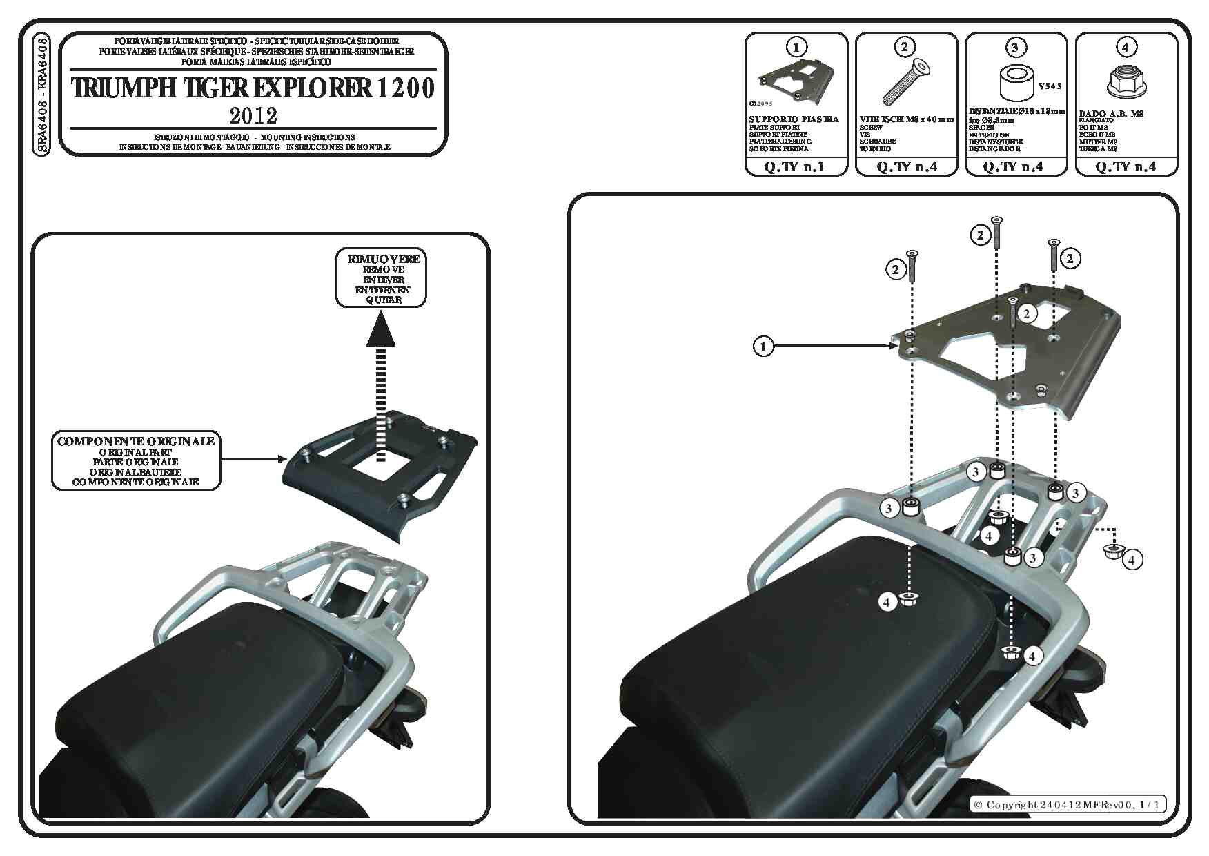 Stelaż kufra centralnego Givi SRA6403 do motocykla Triumph Tiger 1200 (18) / Tiger Explorer 1200 (12-17)