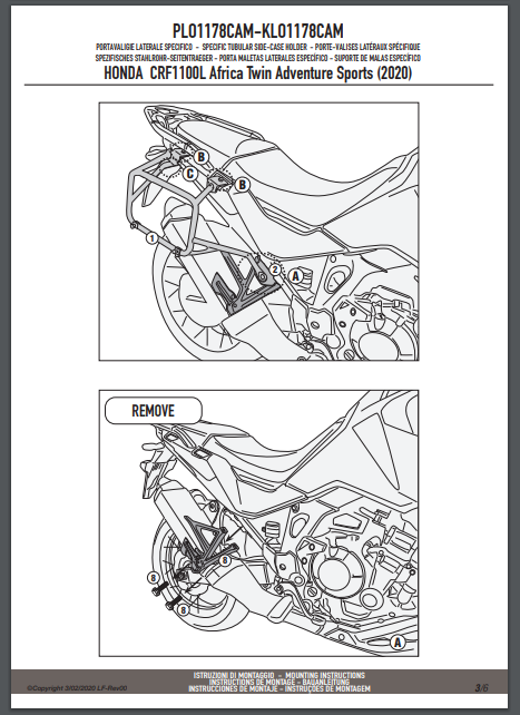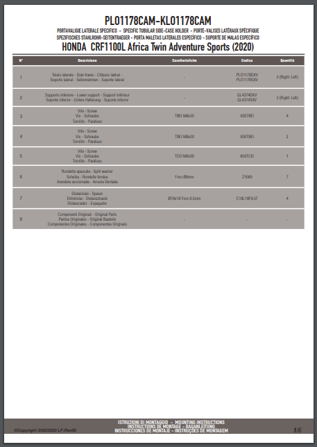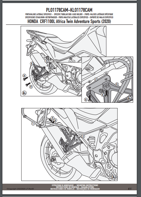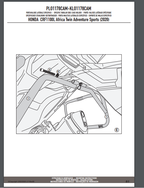 Stelaż kufrów bocznych Givi PLO1178CAM do motocykla Honda CRF1100L Africa Twin (20-25) / Adventure Sports (20-25)
