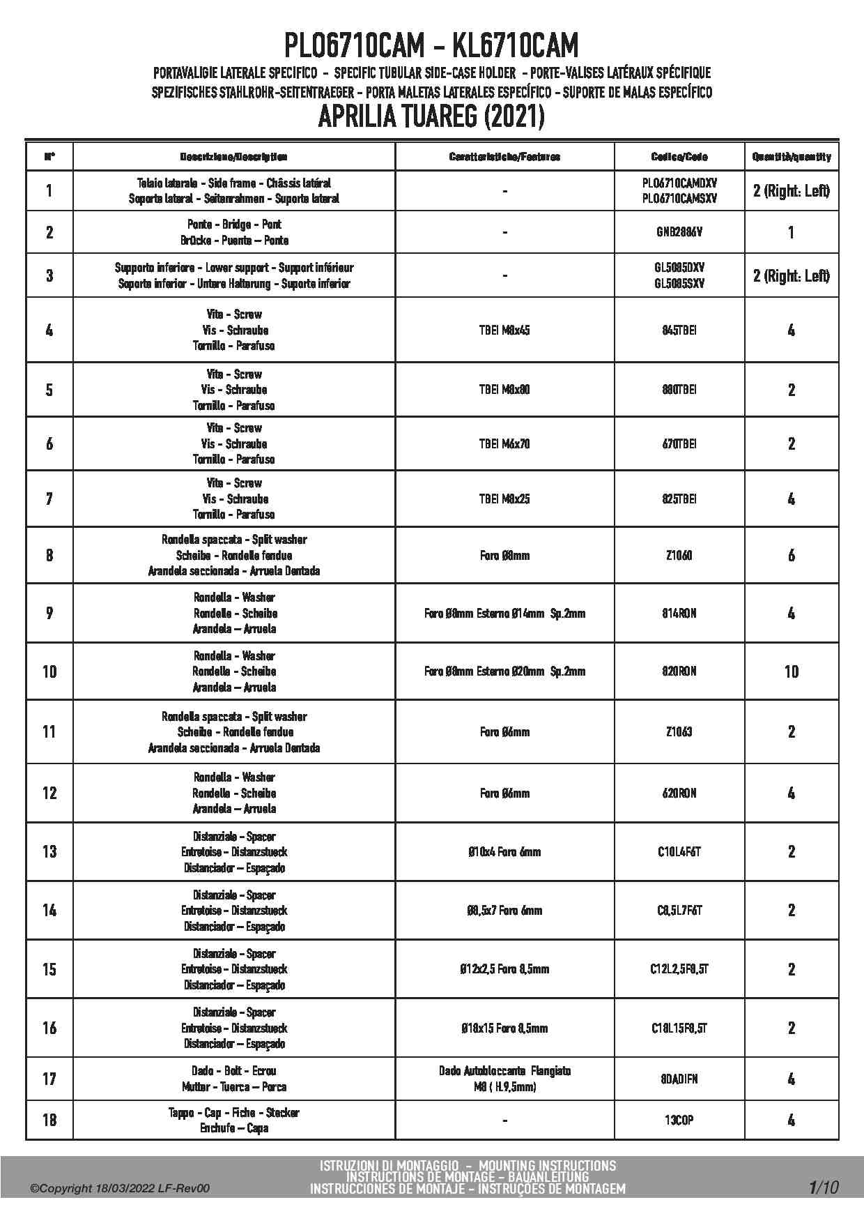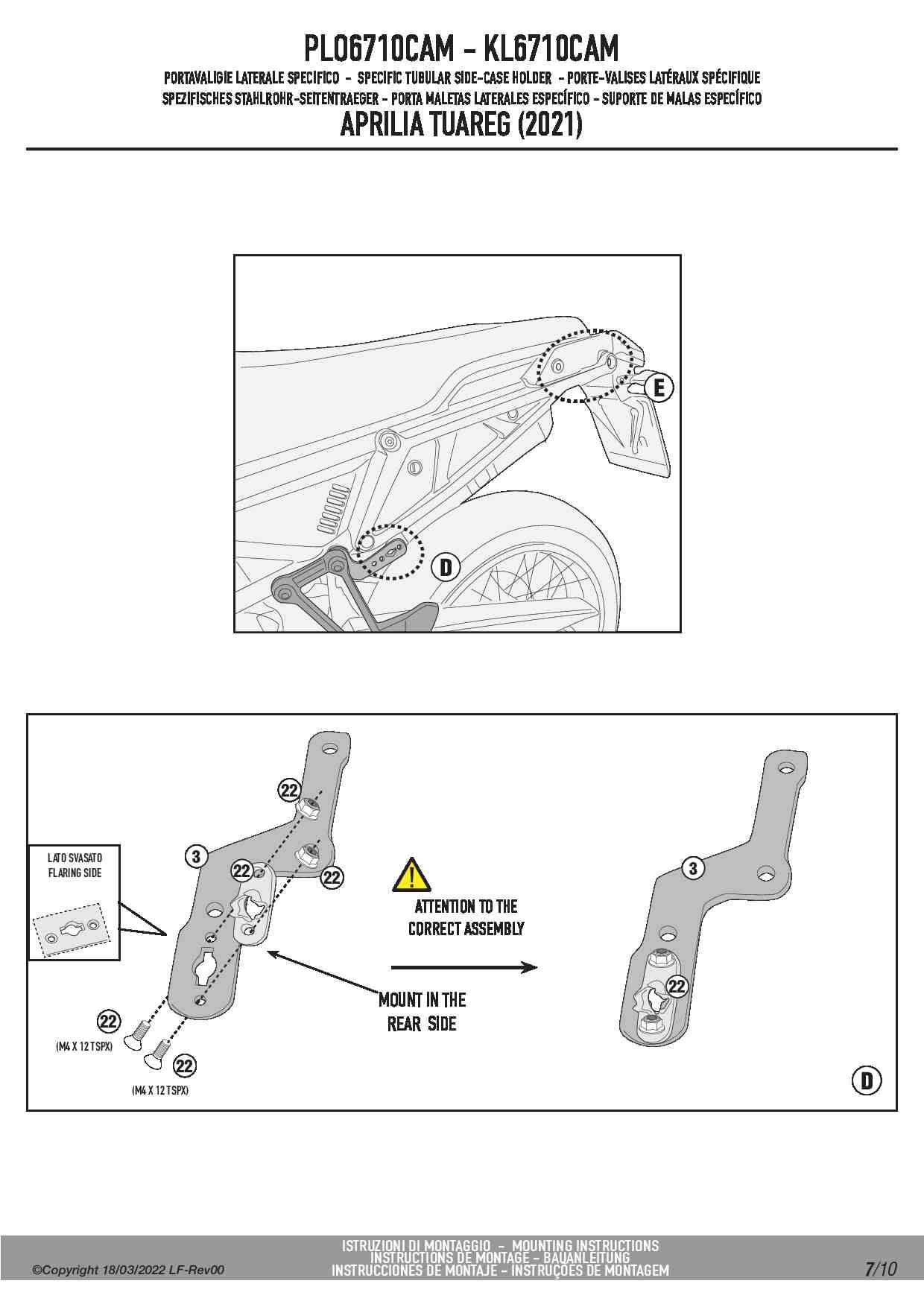 Stelaż kufrów bocznych Givi PLO6710CAM do motocykla Aprilia Tuareg 660 (21-25) / Rally (25)
