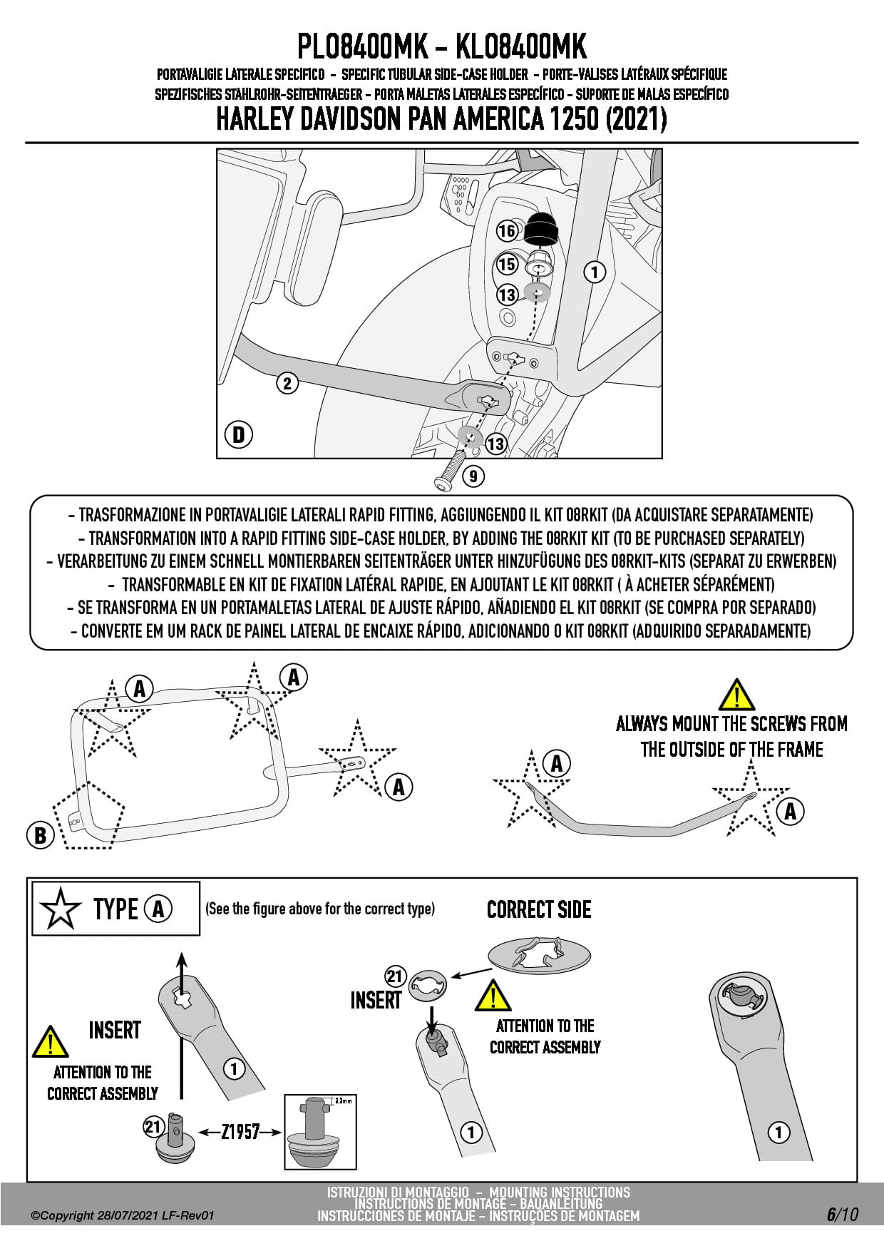 Stelaż kufrów bocznych Givi PLO8400MK do motocykla Harley Davidson Pan America 1250 (21-25)