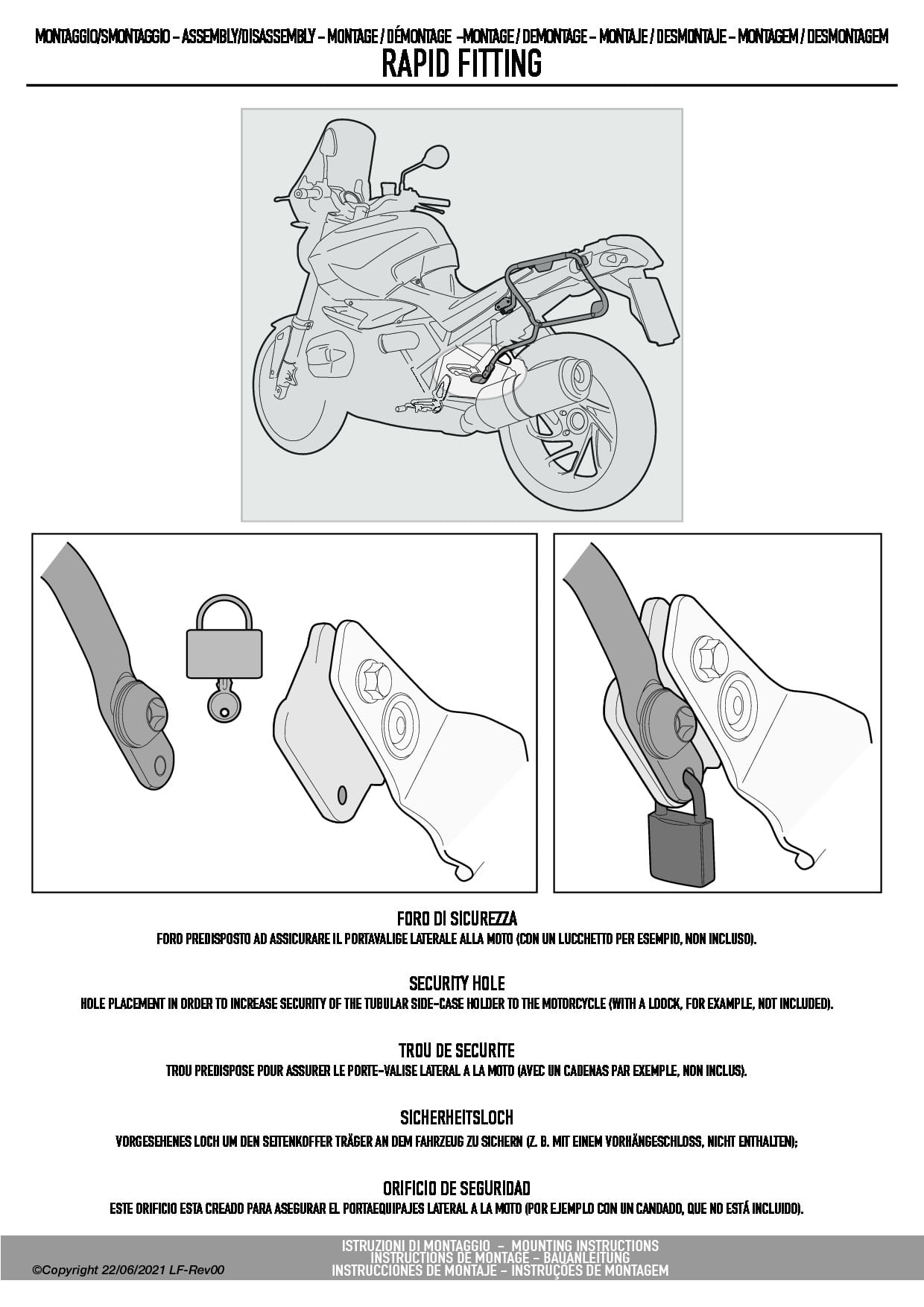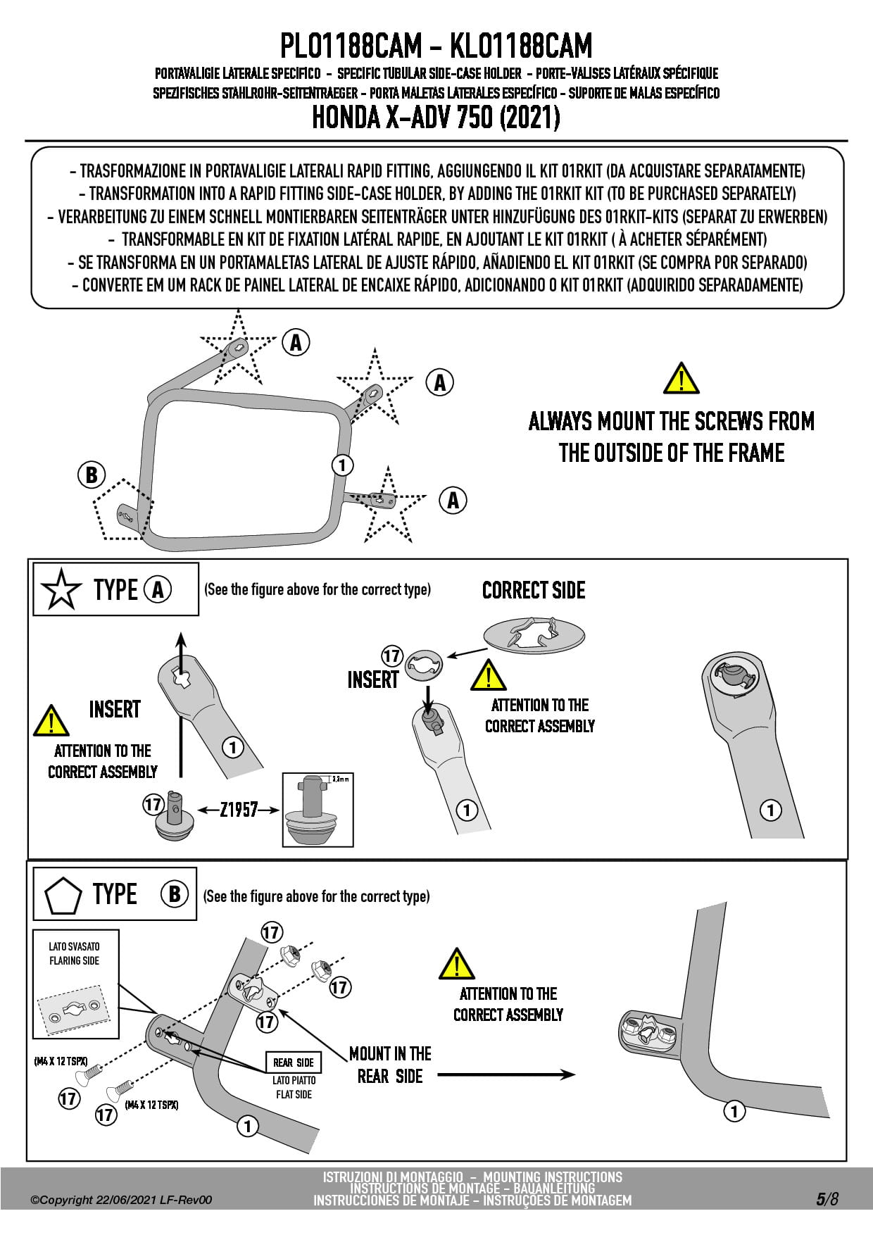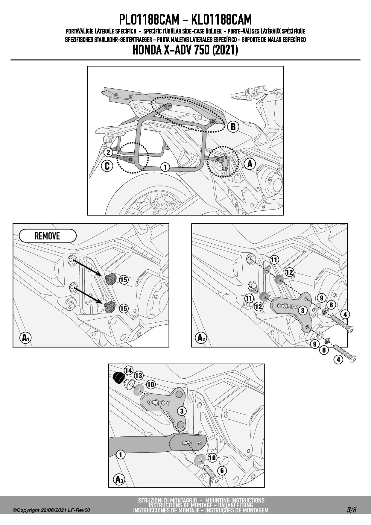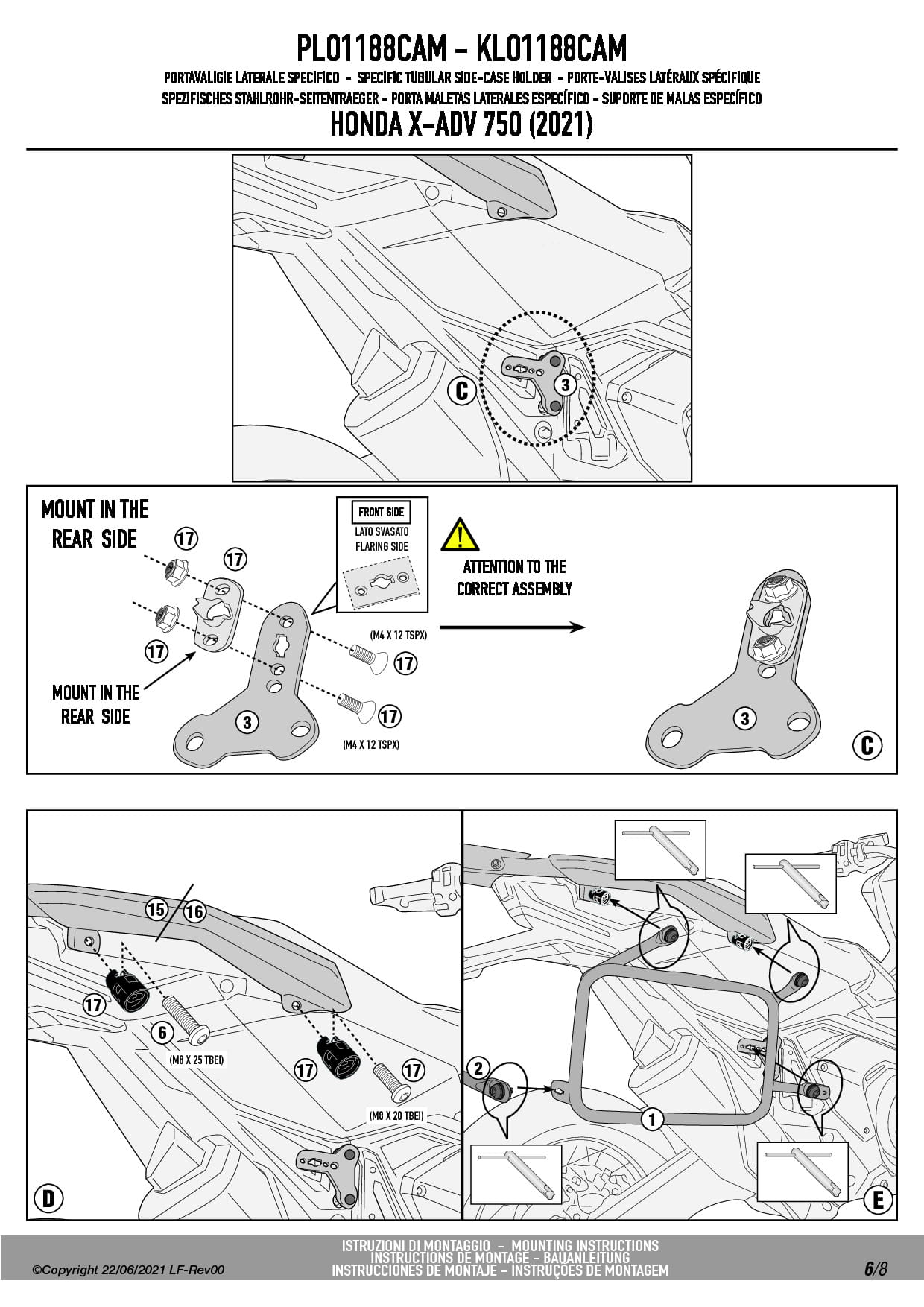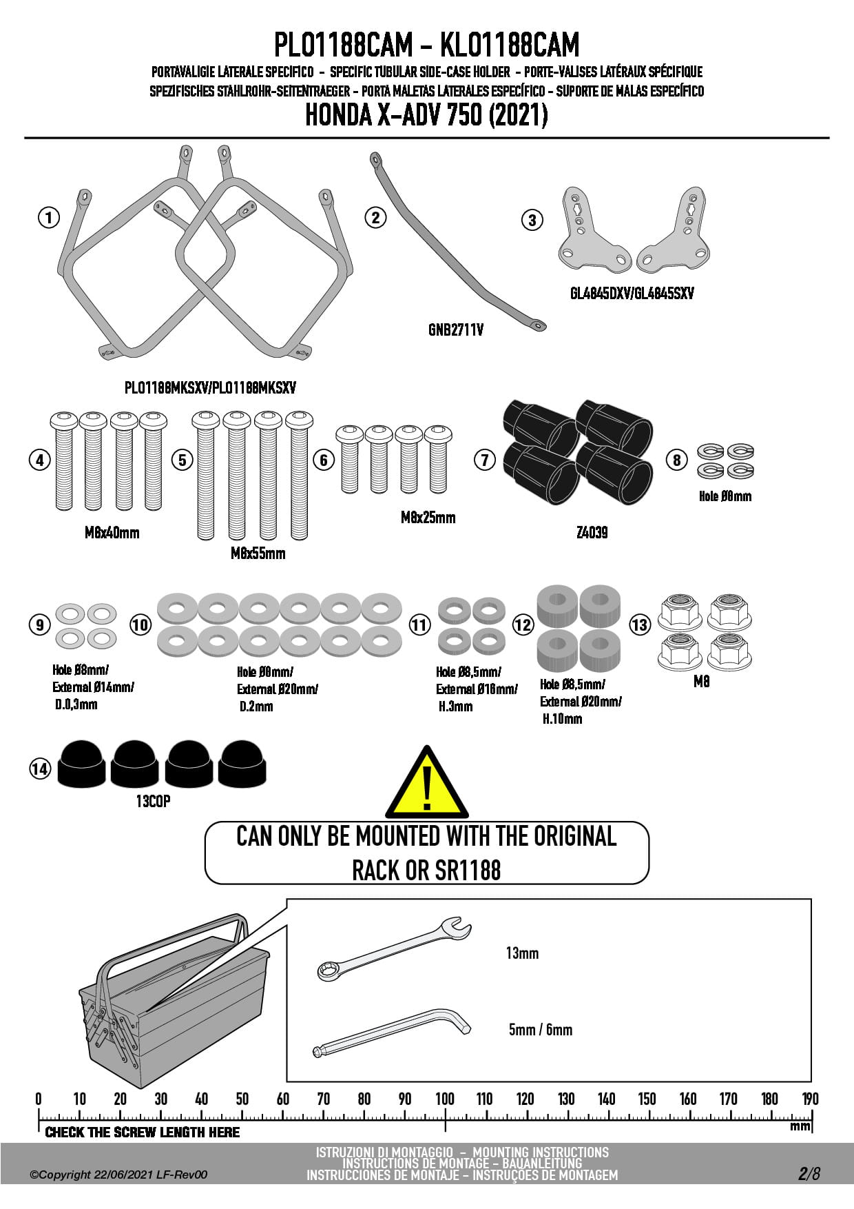 Do zamontowania potrzebny jest stelaż centralny o indeksie SR1188 lub oryginalny stelaż Hondy dostępny jako opcja u producenta.