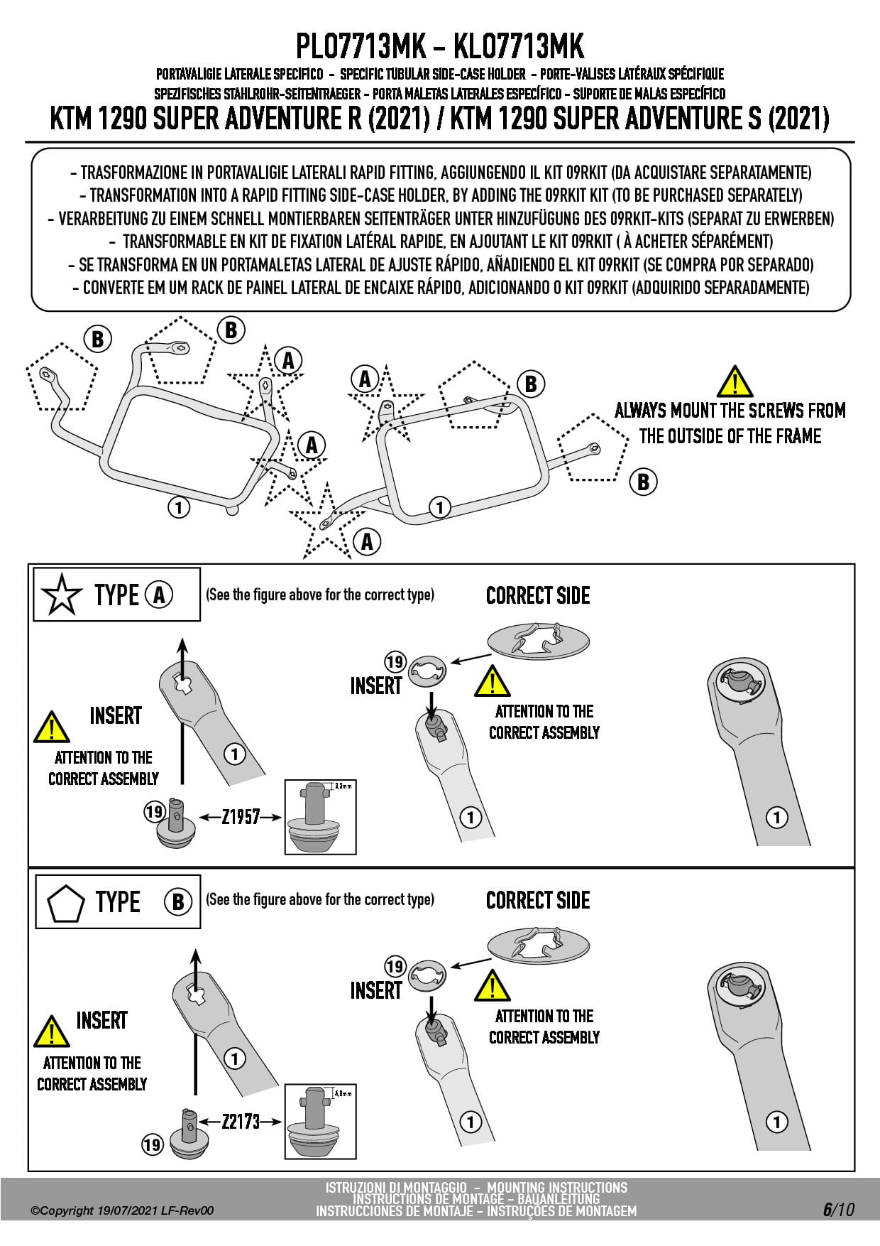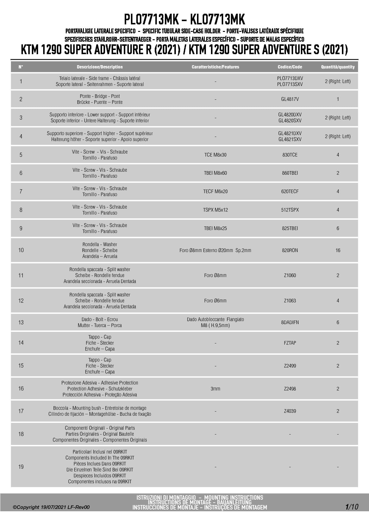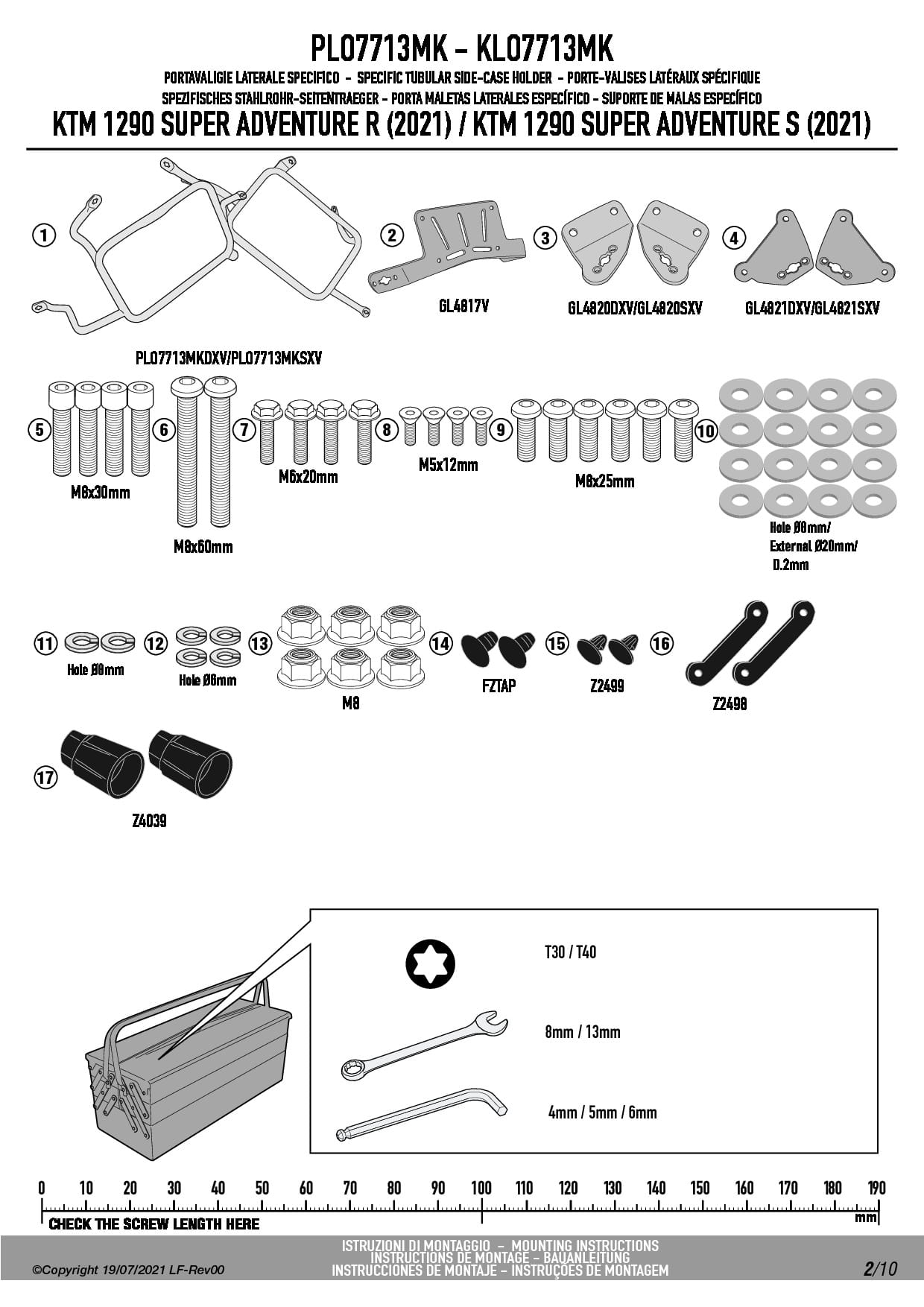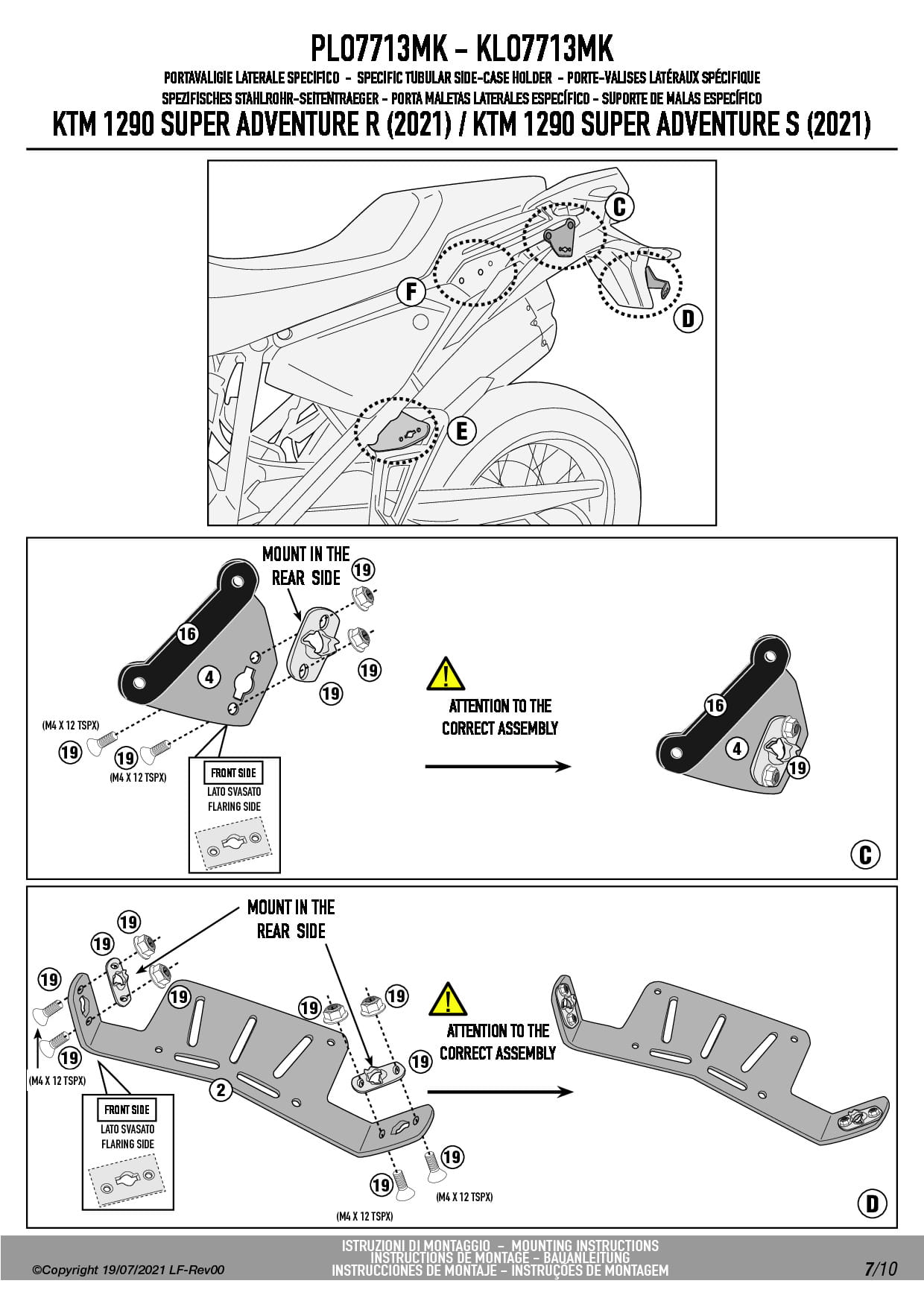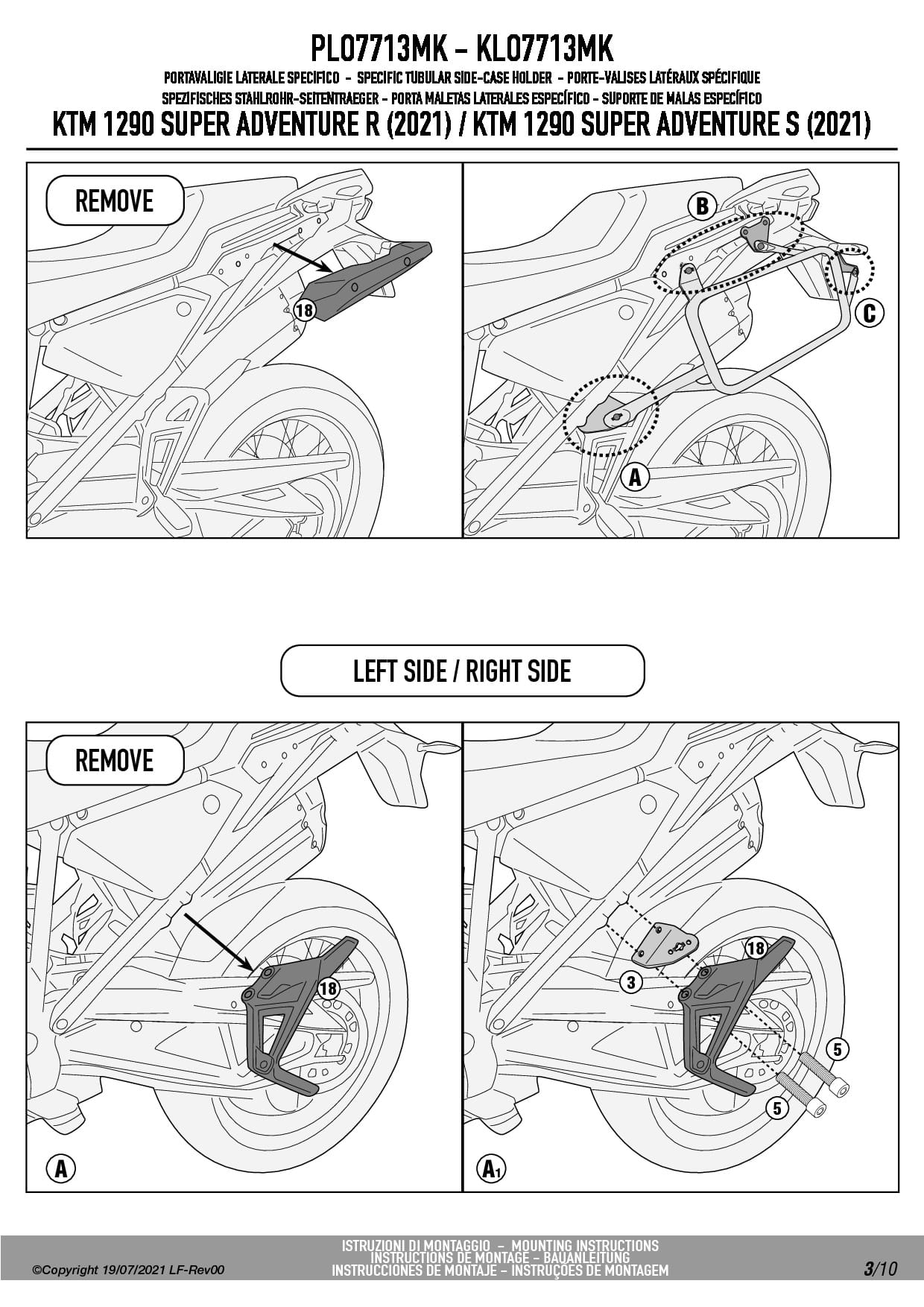 Stelaż kufrów bocznych Givi PLO7713MK do motocykla KTM 1290 Super Adventure R / S (21-25) / 1390 Super Adventure S / EVO (26)