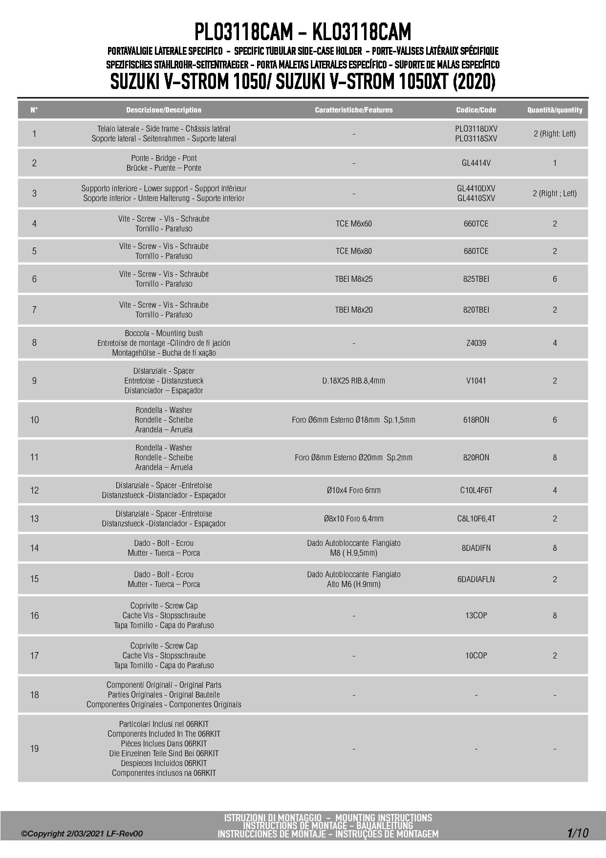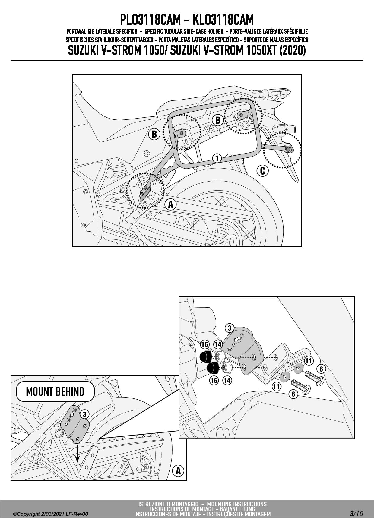 Stelaż kufrów bocznych Givi PLO3118CAM do motocykla Suzuki V-Strom 1050 / XT / SE (20-25) / DE (23-25)