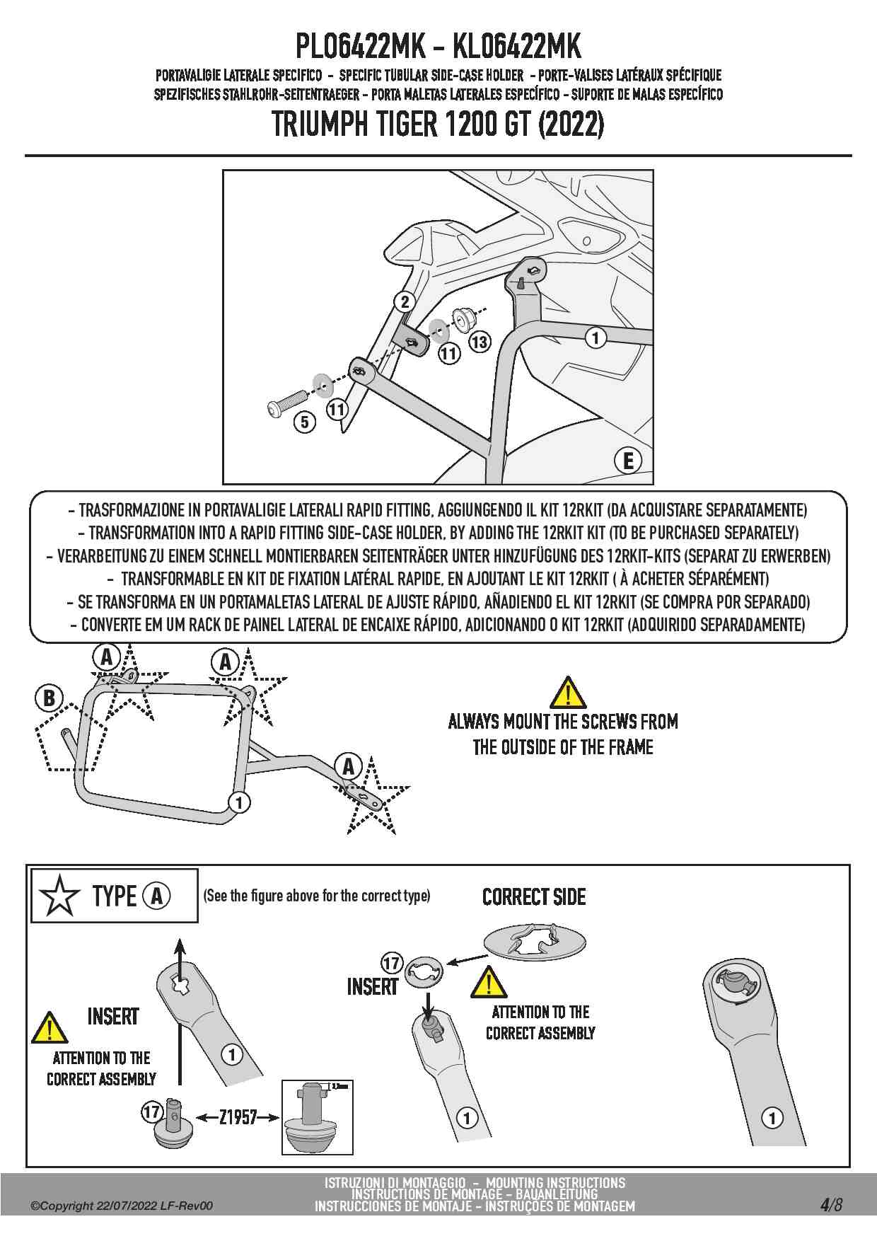 Stelaż kufrów bocznych Givi PLO6422CAM do motocykla Triumph Tiger 1200 GT / GT Pro (22-25)